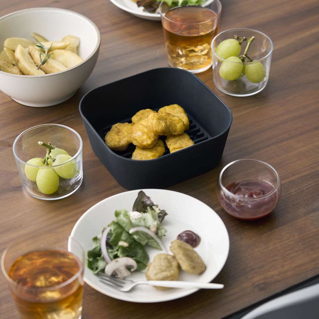 This air fryer liner makes air frying easier by simply placing it in the air fryer basket. It prevents troublesome burnt food and oily stains, significantly reducing the effort required to clean the air fryer and basket. Available in two sizes and two colors: simple white and black, so you can choose the perfect color to match your air fryer. Two sizes are available: a small 16cm and a 21cm, compatible with various models. *This product page shows the 16cm size. The 21cm size is available on a separate page. A specially designed base for healthier cooking: The base is textured to allow excess oil to drain during cooking. It also prevents oil from re-adhering, resulting in healthier, less oily food. Dishwasher and microwave safe: Made of silicone, it's easy to handle and can be turned over to thoroughly clean the textured areas. It's also dishwasher safe. It's heat-resistant (250°C) and cold-resistant (-40°C), making it microwave-safe and freezer-safe. Ready-to-serve design: The streamlined, simple design makes it a natural choice for serving food. It's made of silicone, which doesn't transfer heat easily, so you can serve food as is, which is a time-saving feature. It's sure to make your air fryer even more convenient. Source: https://kurasso.woman.mynavi.jp/