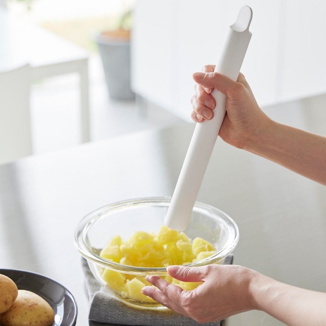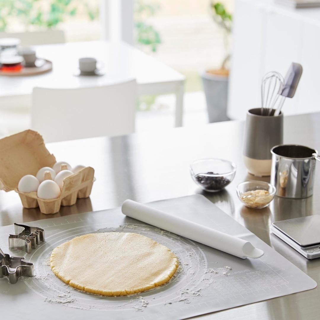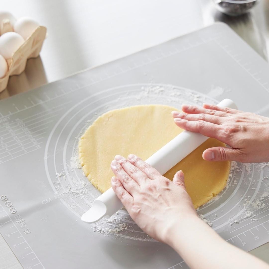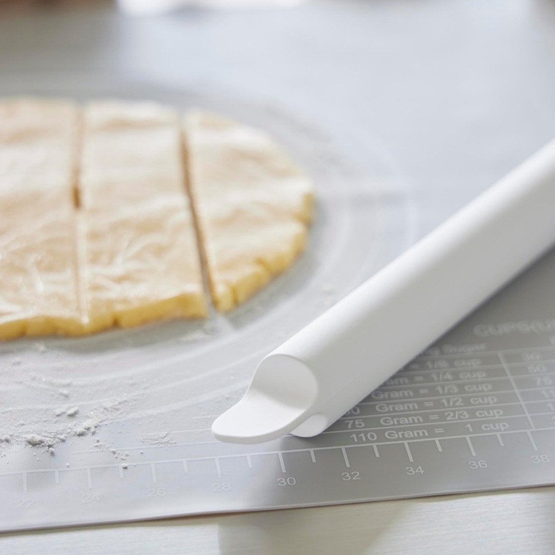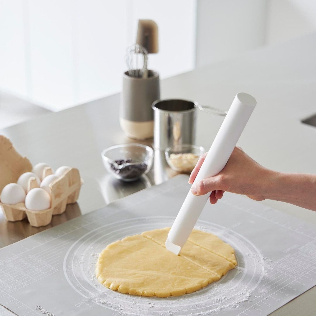 A silicone rolling pin that stretches and cuts. This 2-way silicone rolling pin functions as both a rolling pin for rolling out dough and a scraper for cutting dough. Made of silicone, it's dishwasher safe and easy to clean. It dries quickly and thoroughly compared to wooden rolling pins, eliminating the risk of mold. Available in two colors to complement your kitchen: clean white and stylish black. These simple monotone colors complement any kitchen. Choose your favorite color to complement your existing kitchen tools and decor. Perfect for making cookies, scones, and other sweets. Its comfortable size and moderate weight make it easy to roll out dough evenly. Enjoy a tea break while baking on the weekend for a blissful moment. Scraper function for smooth cutting of dough. One end of the rolling pin is designed as a scraper, so you can cut or mark rolled dough. Silicone rolling pins are less likely to stick to dough, making them ideal for beginners and children. Although rolling pins are often associated with baking, they can also be used for everyday cooking. They are useful in a variety of situations, such as pounding cucumbers for pickles or meat to soften them, or mashing potatoes for potato salad. Source: https://kurasso.woman.mynavi.jp/