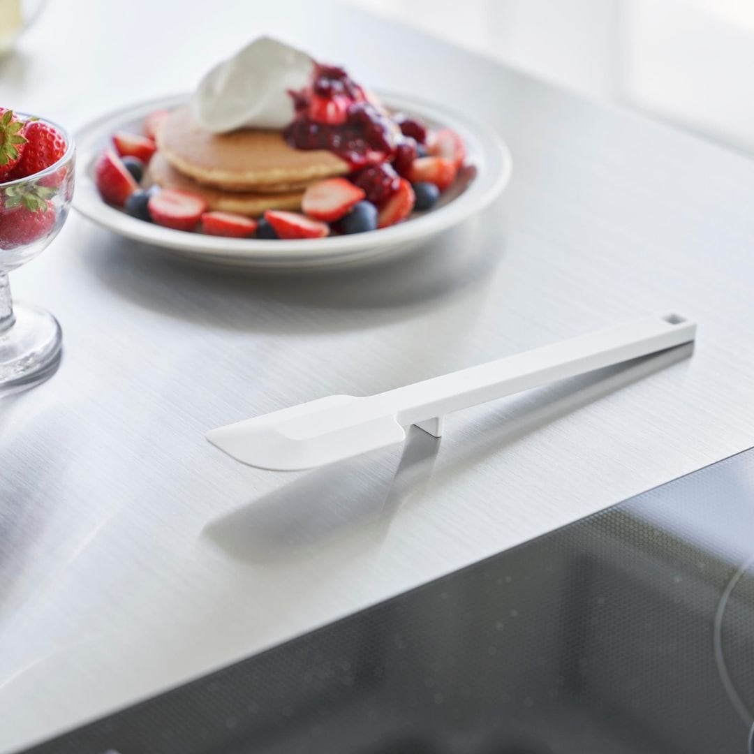 This silicone spatula, small size, is designed for ultimate usability. Tower's silicone spatula, known for its cool, non-slip design, now comes in a smaller size. It's an essential kitchen tool for everyday cooking. While you might think they're all the same, this silicone series will make your cooking experience so comfortable you'll never want to let it go. Its seamless, one-piece construction makes it easy to grip and clean. Its clean, simple design blends seamlessly into any kitchen. Available in two colors, white and black, both feature a matte finish for a stylish look. The monotone color scheme blends seamlessly with other kitchen tools and appliances for a stylish look. It's also a great accent color. Four functions in one: This versatile spatula can smoothly perform four functions: mixing, kneading, scooping, and scooping. The soft silicone material allows for smooth mixing, and the flexible spatula makes it easy to scoop up leftovers from the bowl. It's perfect for baking, kneading baby food ingredients, straining, and collecting sauces and jams left at the bottom of a pot. The integrated stand prevents the spatula from being placed directly on the surface, ensuring hygiene. A small stand is attached to the side of the spatula's handle. The tip is designed to float when placed on a work surface, eliminating the need for a separate small plate or stand. It's convenient for avoiding dirtying the sink or table, and it doesn't get in the way while cooking. Being able to place the spatula on a surface while cooking makes cooking smoother, making everyday cooking more fun and easier. Heat-resistant and flexible silicone material: The flexible silicone tool won't scratch the bottom of pots or dishes, and is compatible with all types of tableware and cooking tools, including stainless steel, enamel, and iron. Its heat-resistant and durable design prevents deformation, and its low thermal conductivity makes it easy to handle. It also does not easily absorb odors, so even when cooking with lots of spices or garlic, you can easily wash off all the dirt, making it suitable for a variety of dishes. Source: https://kurasso.woman.mynavi.jp/
