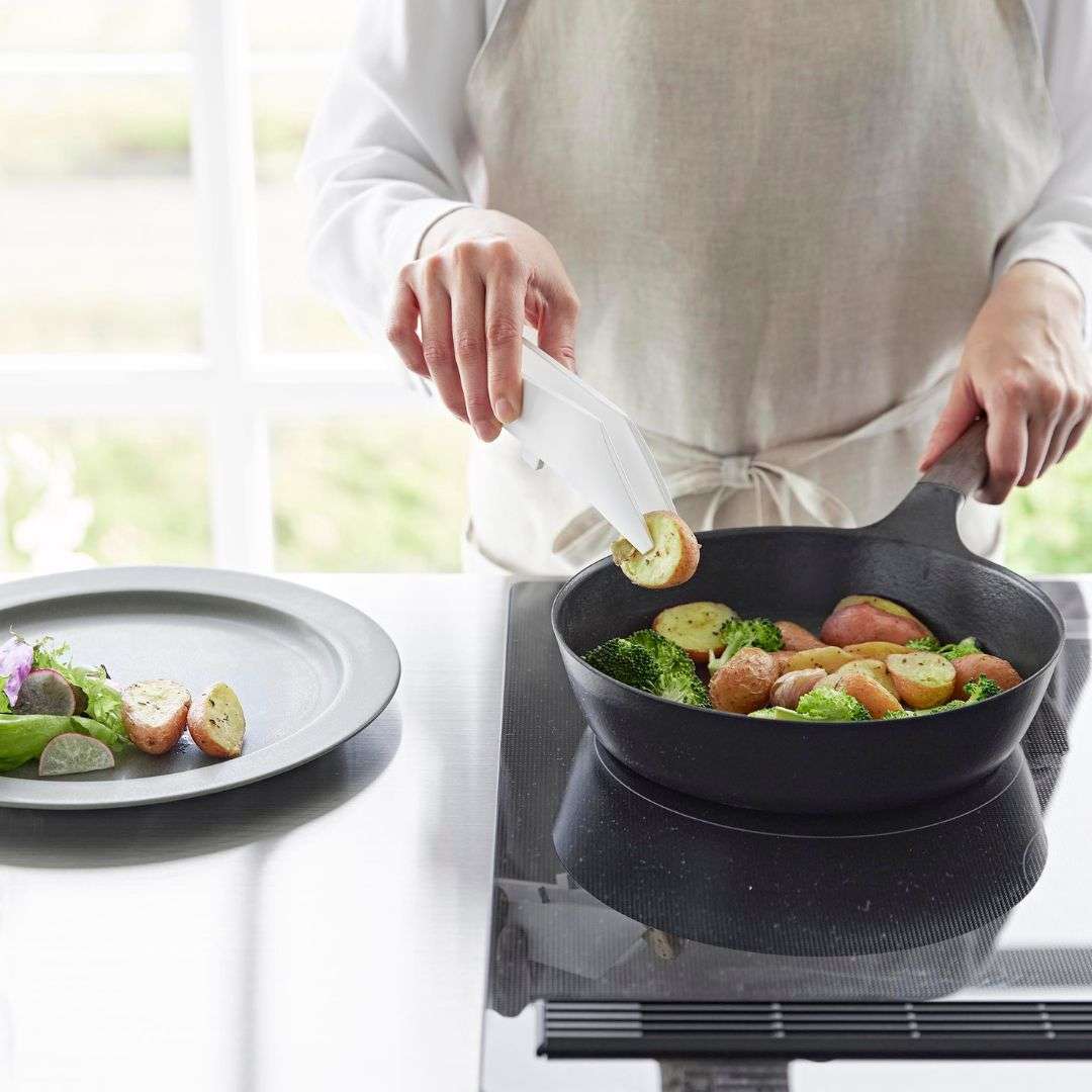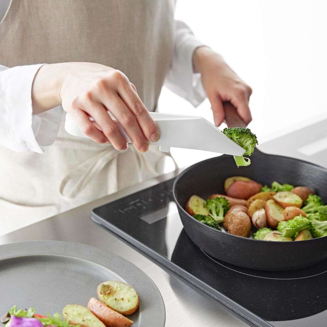 The tips can be placed upright. Silicone Mini Tongs: These small tongs are made of non-slip, heat-resistant silicone. The silicone coating prevents scratches on frying pans and pots, making them safe to use. The thick, easy-to-grip grip provides a firm grip, making them ideal for thinly sliced meat, as well as for serving dishes and other dishes. Available in two colors that blend seamlessly with your kitchen: white and black. Both have a matte finish for a stylish look. The monotone color blends seamlessly with your kitchen, allowing you to coordinate with other kitchen tools and appliances for a stylish space. They also make great accent colors. Cutting Hot Foods: Freshly fried foods and grilled meats can be difficult to handle. These tongs are great for not only grabbing food but also holding it down while slicing. You can also use the tongs to transfer sliced meat or fried food directly to a plate, making them a versatile tool that serves two purposes. Great for the dinner table: These tongs are perfect not only for cooking but also for serving at the table. Their simple, streamlined design makes them look great on the table. They're great for serving salads and large dishes, and for easily grasping delicate appetizers one by one. Ingenious design: The tips float when placed down, so they don't touch the work surface or table. Not only are they hygienic, but they also eliminate the need for a tray, reducing the amount of dishes you have to wash. Their heat resistance makes them great for baking, frying, and deep-frying. They're also dishwasher safe. Source: https://kurasso.woman.mynavi.jp/