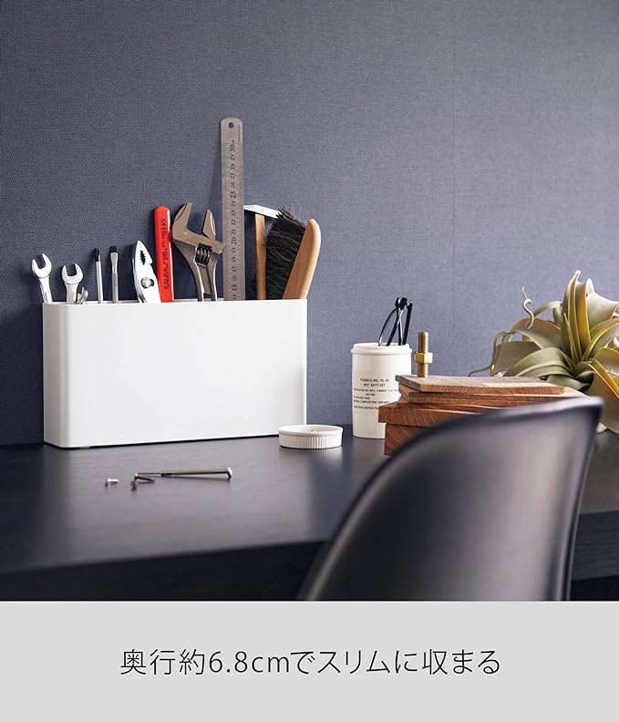 Smartly store functional tools. This slim tool stand keeps your tools neatly organized and close at hand. The raised left edge is convenient for storing low-profile items. The slit at the back of the divider can hold sandpaper. The divider is removable for easy cleaning. Available in two colors, perfect for your desk: bright white and dignified black. For tools with various shapes and handle colors, the simple color scheme of the stand makes it easy to identify what you need. Choose your favorite color, such as to match the color of your desk. This "tool stand" is not just a pen stand. It stores tools upright, just like stationery. Place the tool stand on your workbench like a pen holder for quick access to the tool you need. The upright position makes it easy to find the tool you need at a glance. For plastic model building. For the workplace. It's perfect for the workplace, as well as for hobbyists who build plastic models. Store everything neatly and tidily, including the nippers and cutters used to separate parts, stainless steel rulers, and tweezers essential for detailed work. The raised bottom accommodates shorter tools. Easy to clean: Only the leftmost space is raised, so shorter tools can be stored there. The divider can be easily removed, making it easy to clean even if sanding debris accumulates at the bottom of the stand. Source: https://kurasso.woman.mynavi.jp/