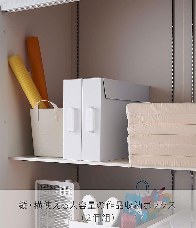 Organize and store your precious memories. This large-capacity storage box can be used vertically or horizontally. It can also store three-dimensional artworks made by children. It can also store the storage bags (A2 size) that children bring home. The large capacity allows you to store seasonal items and compression bags. It comes with a reinforcing sticker that can be attached to the handle insertion opening. Source: https://kurasso.woman.mynavi.jp/
