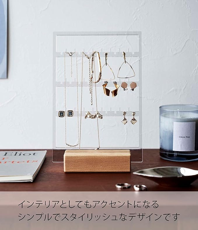 Store your accessories as if they were on display. This stand is beautifully made with a high-quality wooden base and a glossy plate. The slanted plate allows you to store your accessories neatly without them overlapping. Simply hang your accessories from above on the slit for easy storage. Source: https://www.amazon.co.jp/