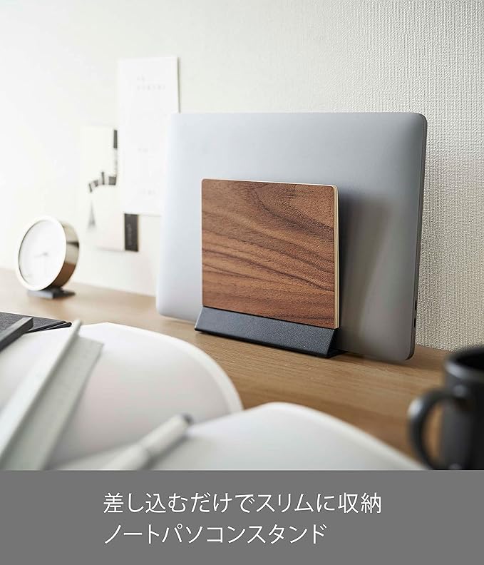 This device stand exudes the warmth of wood. It's a dedicated stand for storing laptops and tablets upright. Simply insert it from the top for convenient access when you need it. Recommended for those who want more space around their desk and stylish, smart storage when not in use. Available in two colors to complement any interior. The stand features a simple design that combines natural wood and steel. Choose from two colors: "Brown," which offers a luxurious and calming impression, and "Natural," which offers a clean and bright impression. Each stand features its own unique grain and color, allowing you to enjoy the changing color with use, a unique feature of natural wood. Slim design fits easily in small spaces. The unit measures 16cm wide, 15cm high, and 6.2cm deep. It can accommodate one laptop or tablet up to 17.3 inches, 2.7cm thick, and weighing up to 2.8kg. Creates a clean and spacious workspace. Storing it upright frees up desk space for increased productivity. It's also useful when you want to spread out documents to work on, take a break from work during lunch, or clean up your desk. Reliable materials protect your device from scratches: The inside of the stand where your computer or tablet touches it is equipped with a silicone mat, and the bottom is equipped with cushioning material. Because it's your precious device, you can store it safely without worrying about scratches. Source: https://kurasso.woman.mynavi.jp/