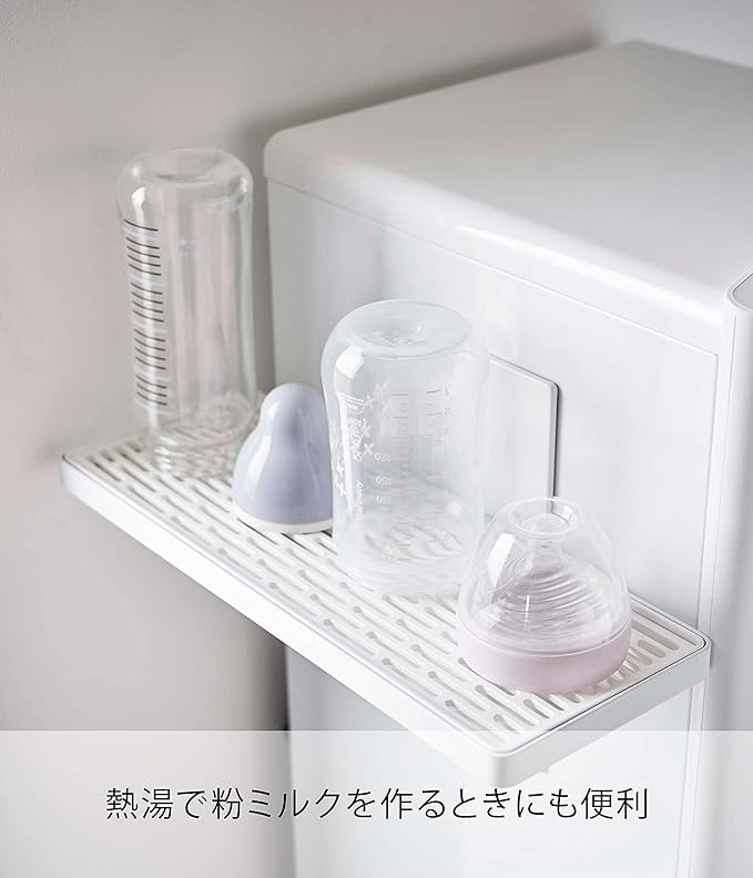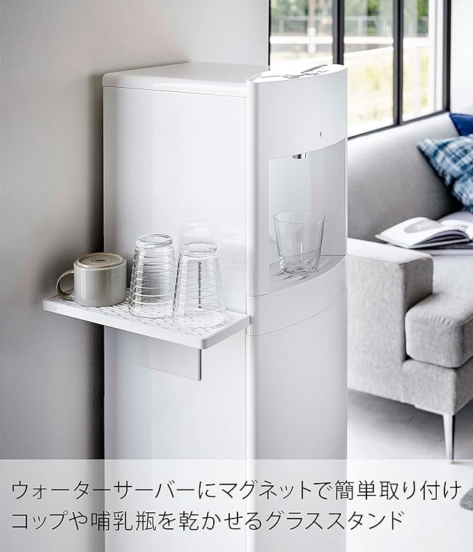 Easily attaches to the side of the water server with a magnet. A glass stand for drying washed cups and baby bottles. You can quickly use it when you want to dry glasses, mugs, baby bottles, etc. Recommended for those who make powdered milk with hot water from the water server. The large drainage holes make it easy to dry glasses and mugs and keep them clean. The water tray can be disassembled and washed. It can be used even more conveniently in combination with the "Magnetic Instant Stick Holder Tower (sold separately)". It can also be attached to the side of a mini-sized refrigerator, so it is also recommended for bedrooms. The magnet attachment part can be selected from left, center, or right, so it can also be used with water servers that have a large curved front. Source: https://www.amazon.co.jp/