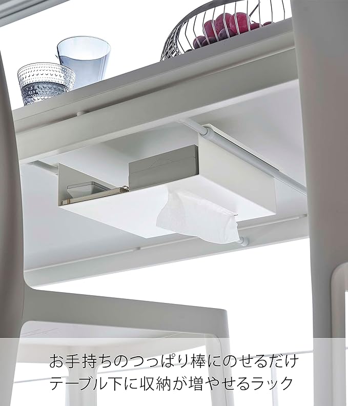 Expand your under-table storage space without drilling holes. This storage rack utilizes tension rods to free up dead space under your table. Frequently used items like tissue boxes and remote controls tend to be left out on the table. Storing these items under the table will give a neater, more organized look to a room that seems cluttered. Available in two colors to match your table: bright white and stylish black. The monotone color scheme complements a variety of interiors. Choose your favorite color to match the material of your table or desk. Pull out tissues directly from the bottom. By placing the tissue box access opening facing downwards, you can pull out tissues without having to remove the box. This adds a touch of space to your table and conceals the unique packaging of your tissue box. The powder-coated finish creates a luxurious matte finish. Install with commercially available tension rods. Complete the setup using any tension rods you already have. No drilling required, so there's no need to worry about damaging your furniture. You can fine-tune the storage space by simply changing the position of the tension rod. It can be installed on your office or home desk to secure additional storage space. It can be used on desks without drawers, keeping the desk tidy and increasing work efficiency. It's also recommended to store notebooks, pencil cases, receipt files, etc. to make it easier to keep track of household expenses in your spare time. It's also a great place to store your summer vacation homework and encourage your children to study in the living room. Source: https://kurasso.woman.mynavi.jp/