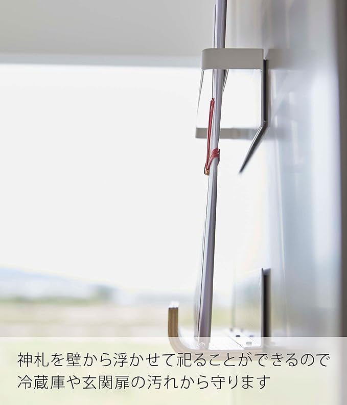 Easily attach to a steel front door or the side of a refrigerator with a magnet. A beautiful wooden talisman holder. Even if you don't have a Shinto altar, you can enshrine your Shinto talisman and hamaya arrows together. It is also recommended for enshrining Shinto talismans for the front door or fire prevention talismans for the kitchen. The spacing between the upper and lower parts can be adjusted according to the length of the talisman. You can enshrine the talisman by lifting it off the wall, so the refrigerator or front door will not get dirty. This is a wide type that can enshrine multiple talismans. Source: https://www.amazon.co.jp/