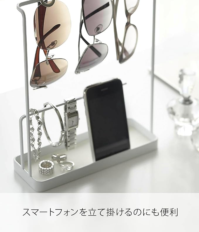 This is a convenient stand for sunglasses, watches, rings, and other accessories. It can hold up to four large pairs of sunglasses. You can also prop up your cell phone. Source: https://www.amazon.co.jp/