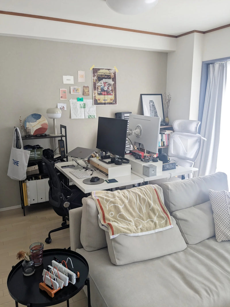 今の仕事スペース、すぐ隣がソファなので 仕事で疲れたらすぐ横になれるのが良い🥱