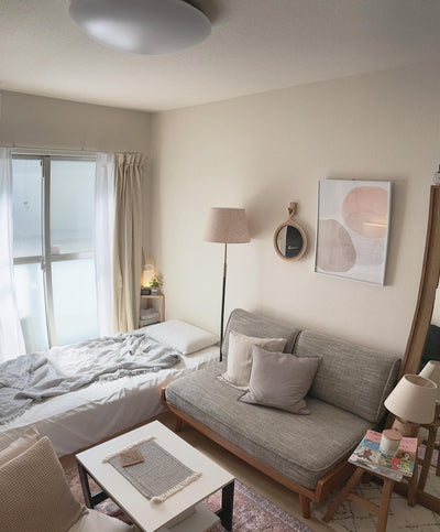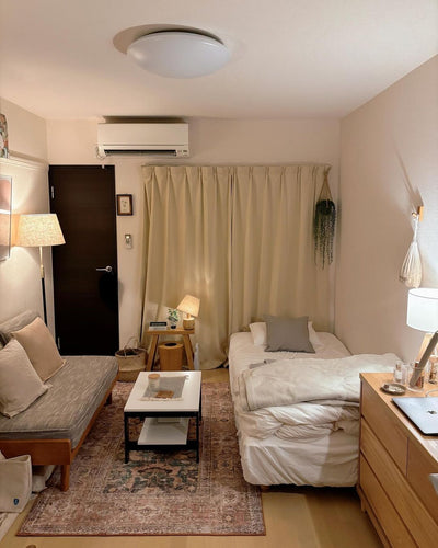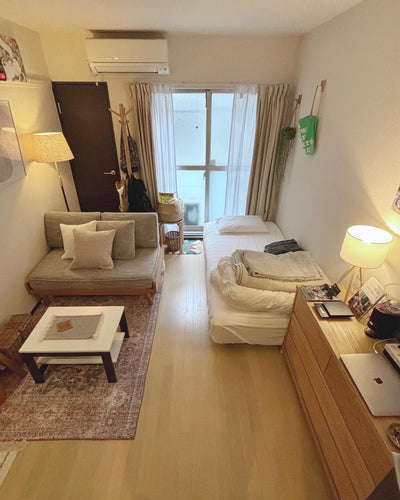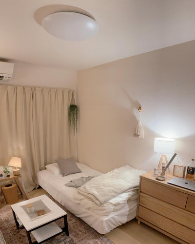 部屋の様子は、ベッド縦向きにしてからも快適に過ごせていて、その時の気分で断捨離とか模様替えができたので、新しいアイテムを増やさなくても、インテリアを楽しめています☺️