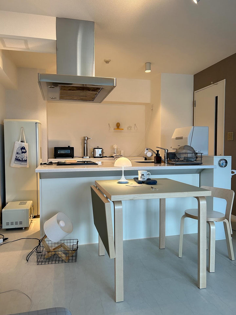 DL81C ドロップリーフテーブル ピスタチオ×オリーブリノリウム