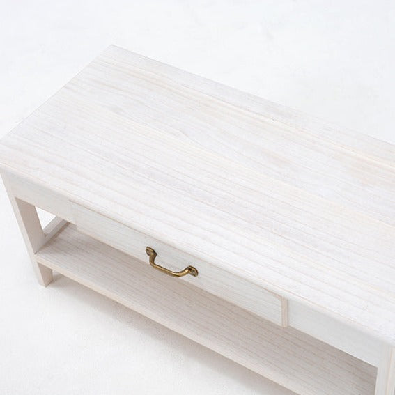 26インチテレビにピッタリのローテーブルです。木目調がシンプルで可愛いシャビーテイストのコンパクトTV台です。