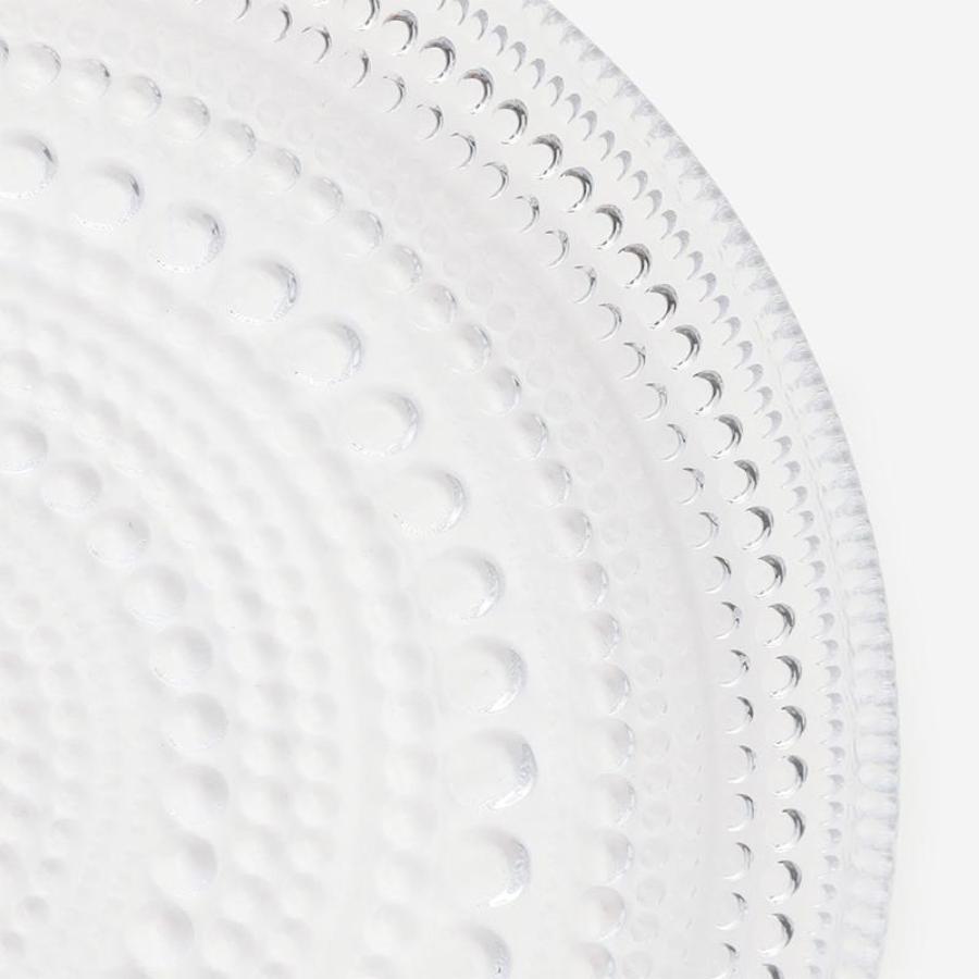フィンランド語で「露のしずく」を意味するカステヘルミ。朝日を浴びて、連なる真珠のようにきらめく朝露にインスピレーションを得て、1964年にオイバ・トイッカによりデザインされました。連なるガラスのしずくのようなデコレーションが、輝くガラスの美しさを際立たせています。17cmのプレートは、副菜やデザート、取皿としても使いやすいサイズ感。何枚か揃えておくと重宝します。