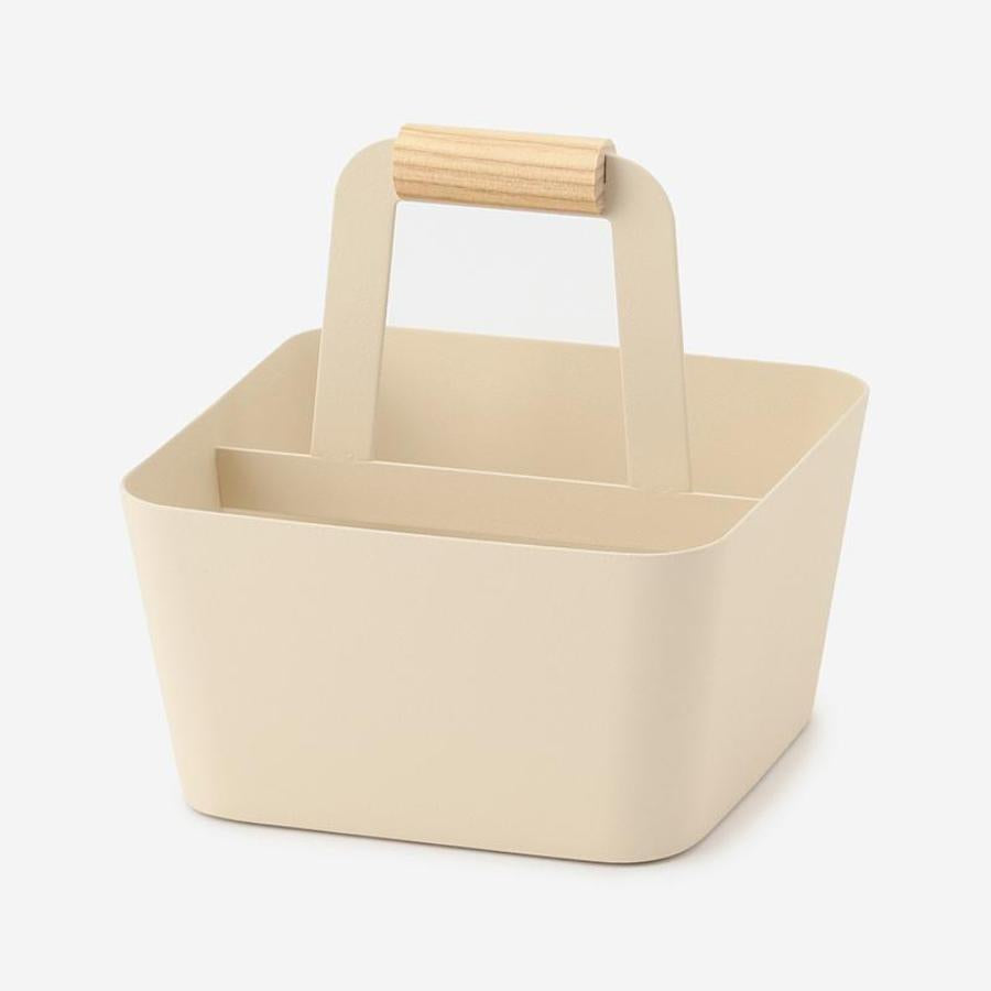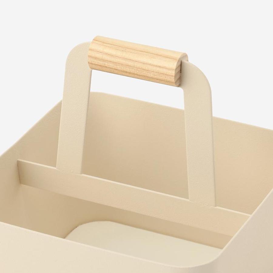 木製の取っ手のついたツールボックスです。単体としてはもちろん、収納ボックスのインナーケースとして利用するのもおすすです。粉体塗装をしたスチールとナチュラルな木取っ手で、モダンな雰囲気にも合わせやすいデザインです。