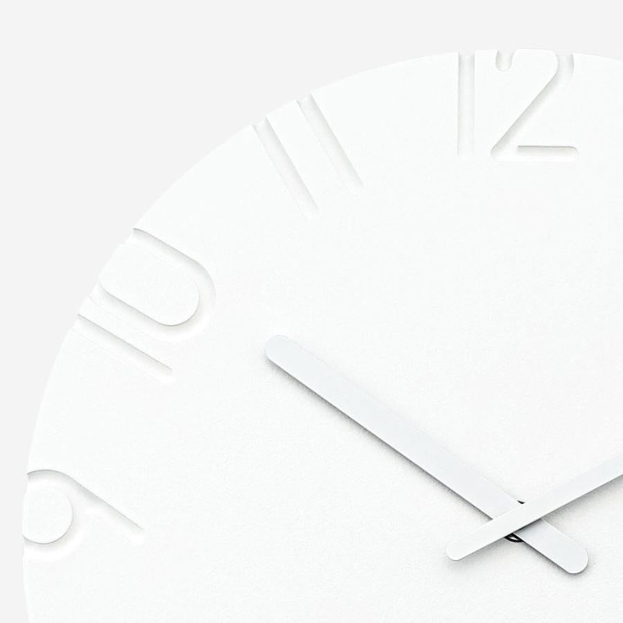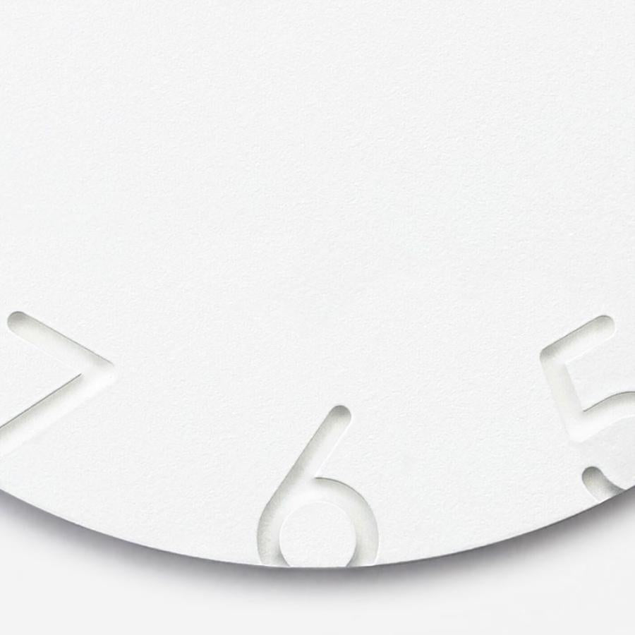 文字盤から文字を彫刻刀で彫り取ったような印象を与える時計です。グラフィックをフォルムとして扱うことを試みています。彫り込まれた文字の落とす陰影が文字盤に立体感を与え、周囲の光環境に応じて表情を変えます。