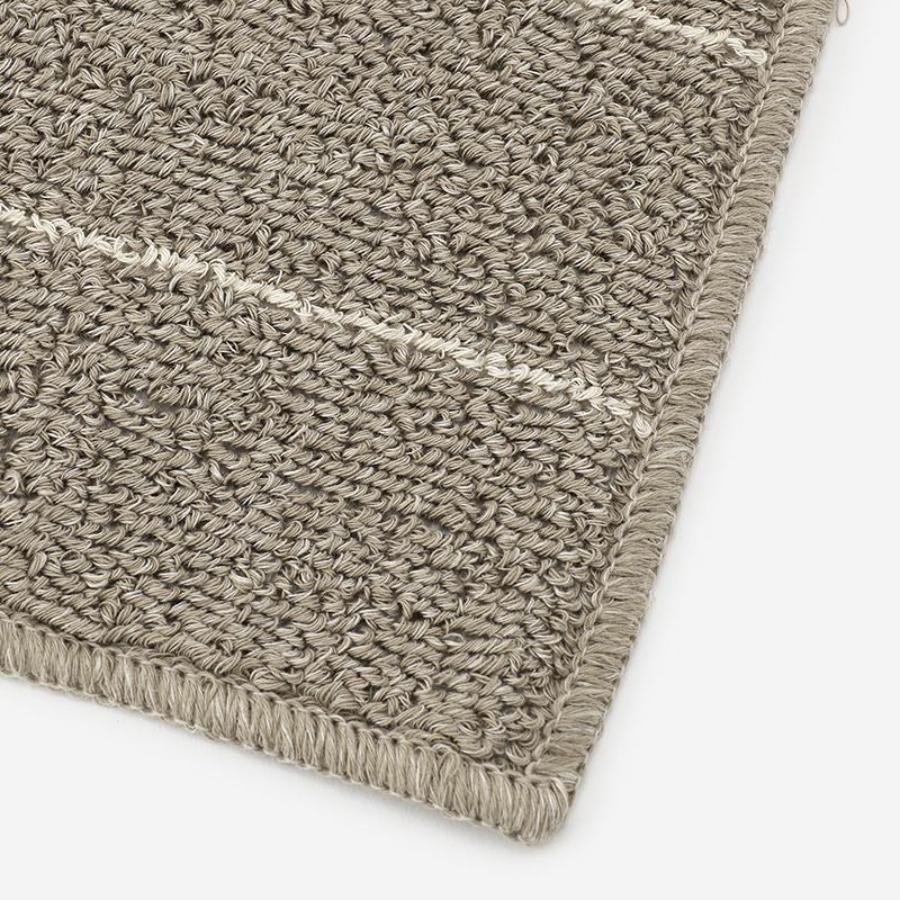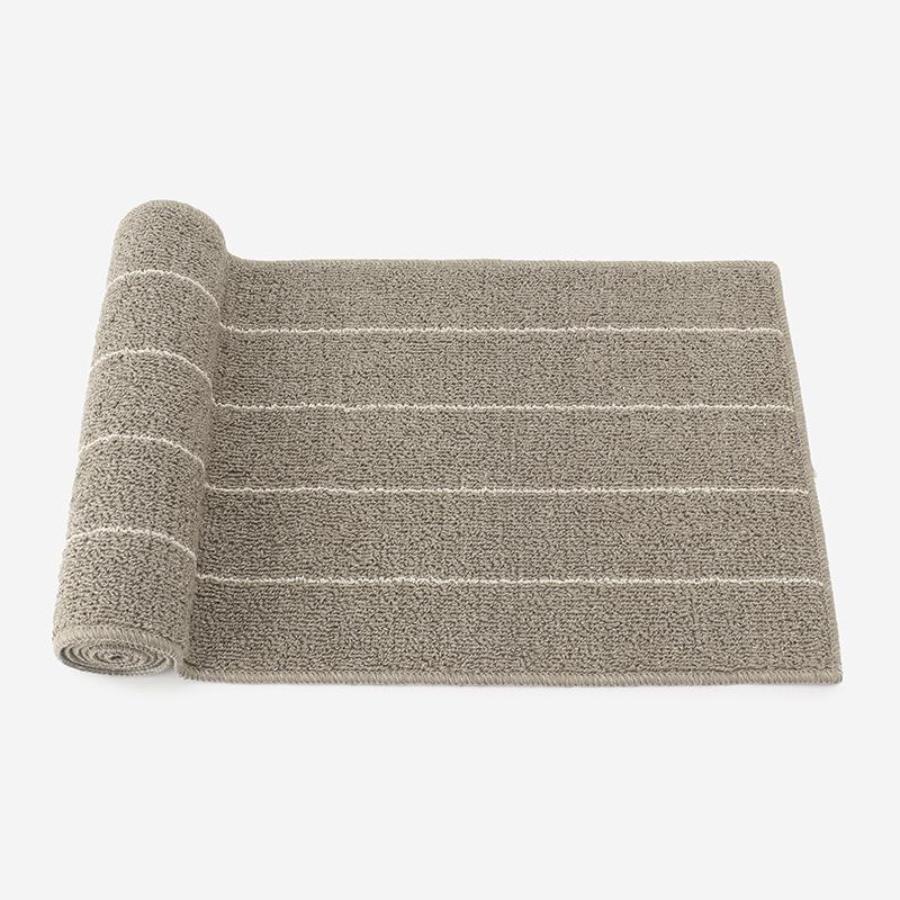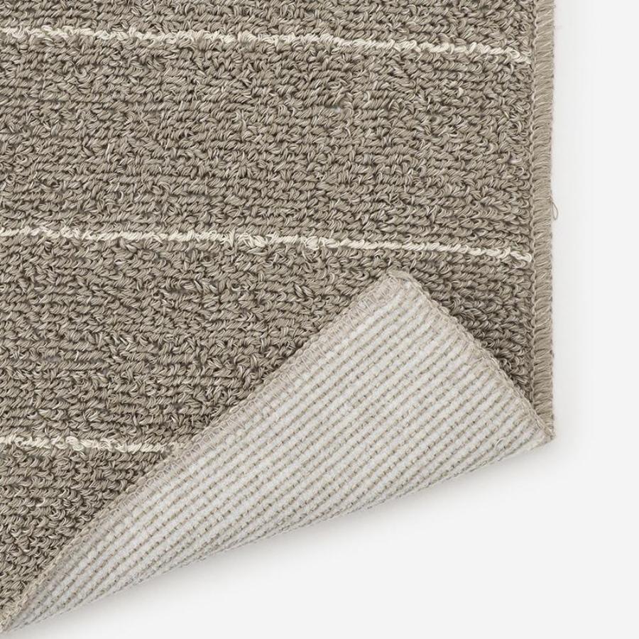 綿麻混でシャリ感のあるさらっとした風合いのキッチンマットです。洗濯後の乾きが早く、キッチンスペースや洗面所など水周りでの使用がおすすめです。シンプルなデザインで床にも馴染みやすいカラーに仕上がっています。足触りもよいマットです。