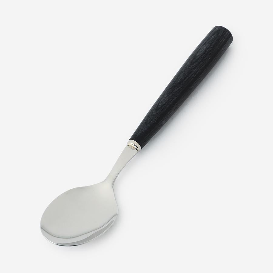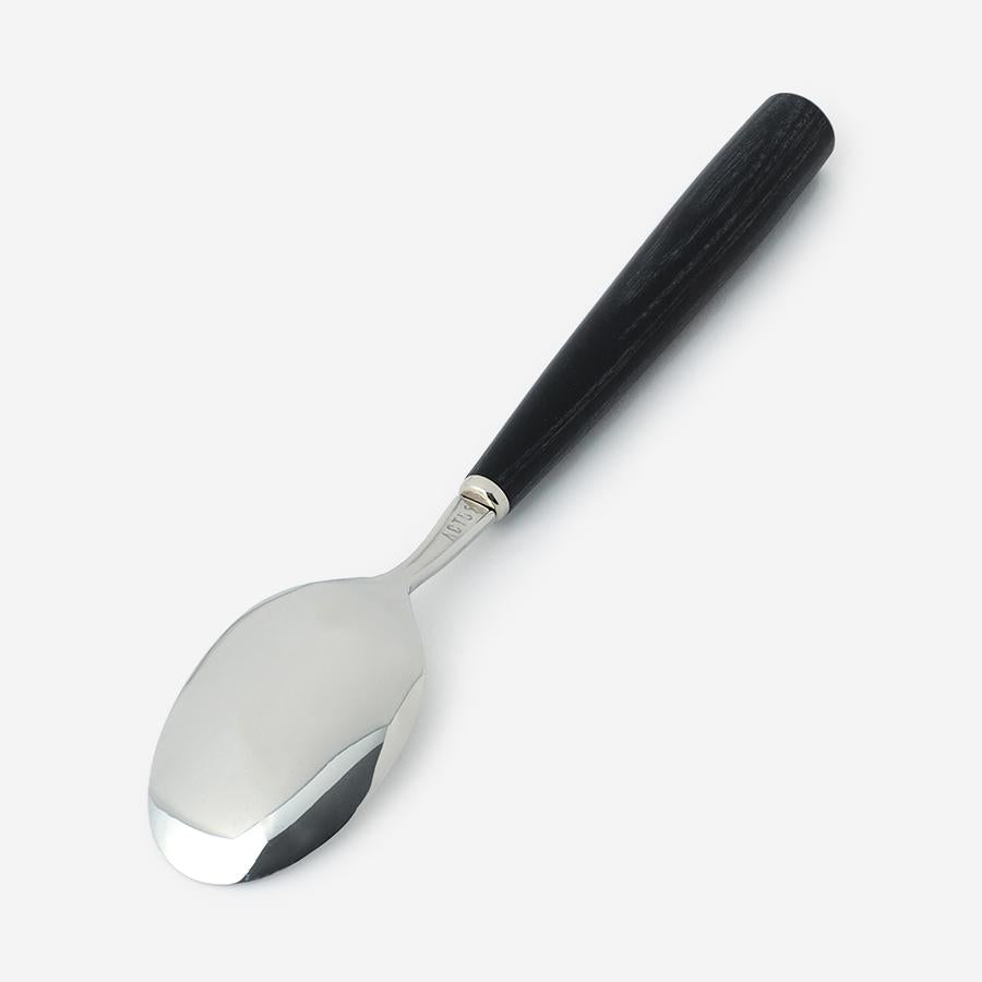 長く定番として販売を続けてきたオリジナル・ウッドカトラリーのディナースプーンです。天然木の質感が良く、持ち易くするため先端がやや細い形状になっています。取手は、樺材の積層強化木を使用しています。木のツヤ有る質感は、研磨でツヤをだしています。