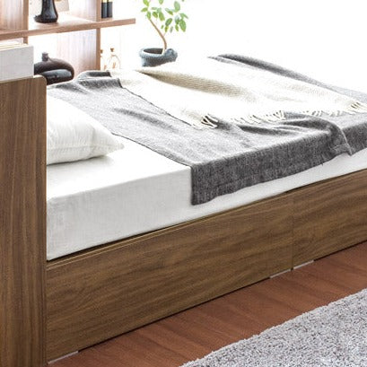 狭いお部屋にも快適なくつろぎ空間を作れる、機能性充実のシンプルベッドです。ベッド下は、お部屋の貴重なスペースを無駄なく活用する豊富な収納スペースになります。中の収納物が見えない隠す収納で、生活感を抑えてお部屋をすっきり見せて頂けます。ヘッドボードには、眼鏡や目覚まし時計、本などを置ける棚を設置しました。