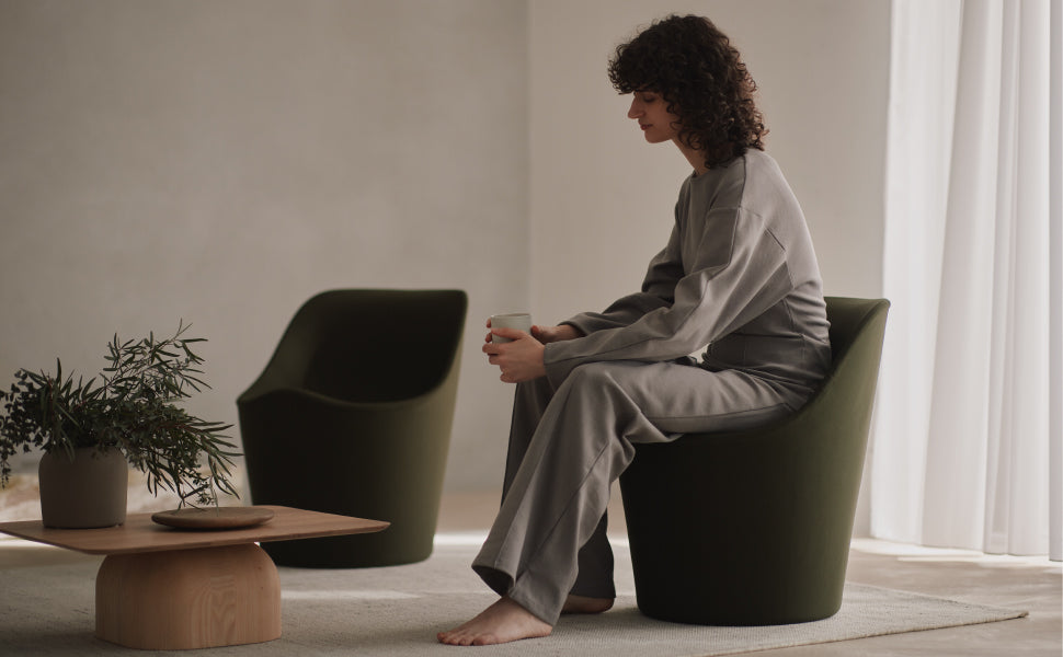 姿勢サポートシリーズKURAの機能・デザインを踏襲した、1人掛けのコンパクトソファです。身体になじむフィット感で、疲れにくいやさしい座り心地です。シンプルでエレガントなフォルムは、空間に優しく溶け込み、インテリアにも馴染みます。コンパクトなサイズで、低めの座面高さ設計のため、空間への圧迫感がなく、リビングを広くすっきりと見せ、一人暮らしのコンパクトなライフスタイルにもマッチします。