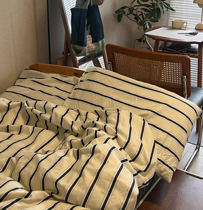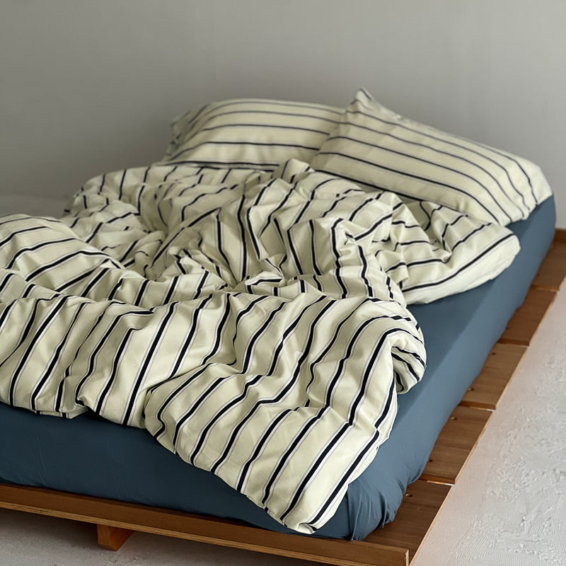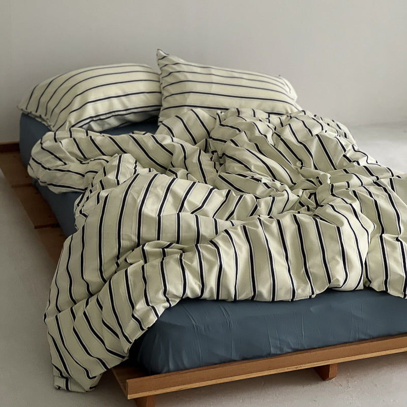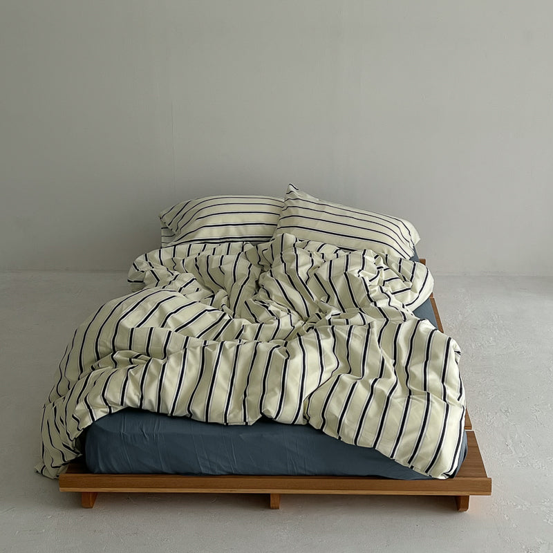 cream×navy シックシンストライプ 布団カバーセット