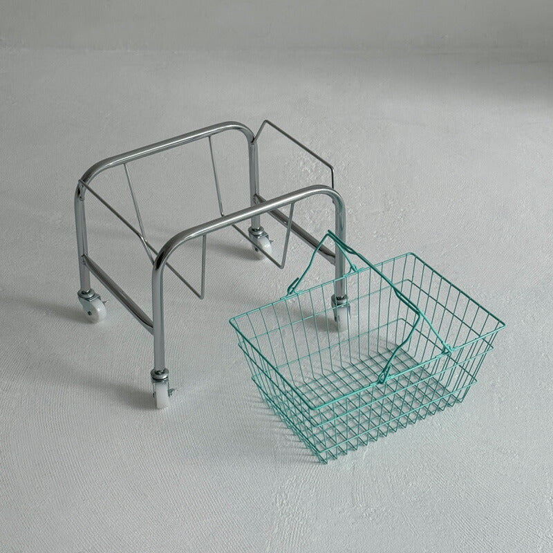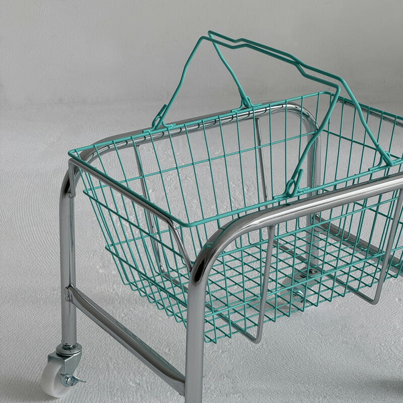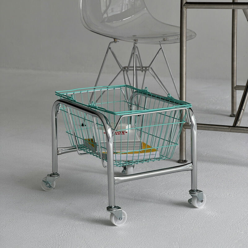 シルバー キャスターワゴン ハンドル付きカラーバスケット