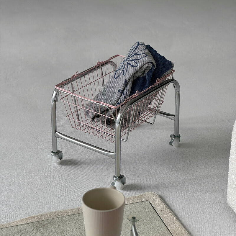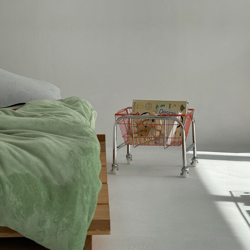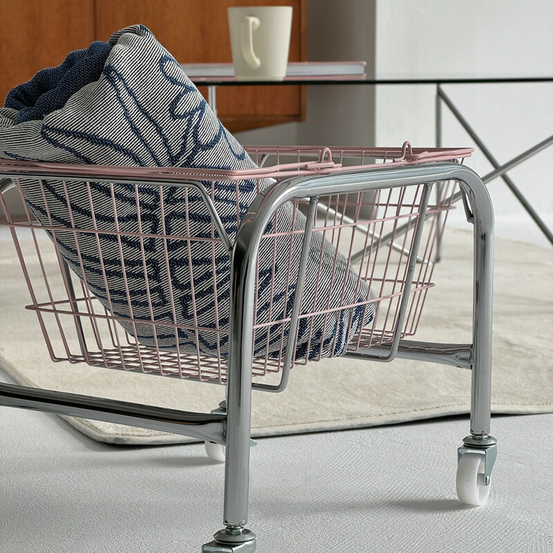 カラーバスケットがインテリアのアクセントになるバスケットワゴンです。雑誌や書類等をまとめる収納ワゴンとして使用したり、ソファサイドではブランケットなどの小物入れとしてなど、様々な場所でご使用いただけます。