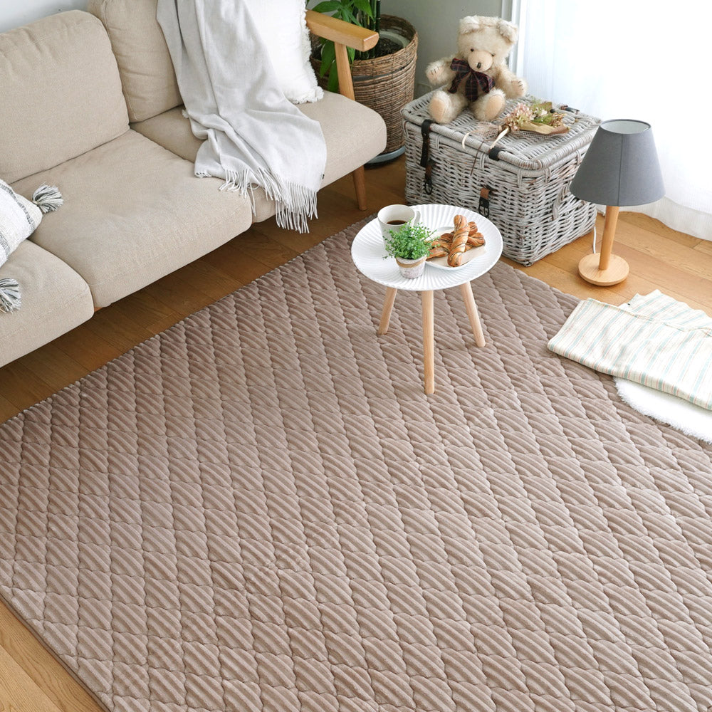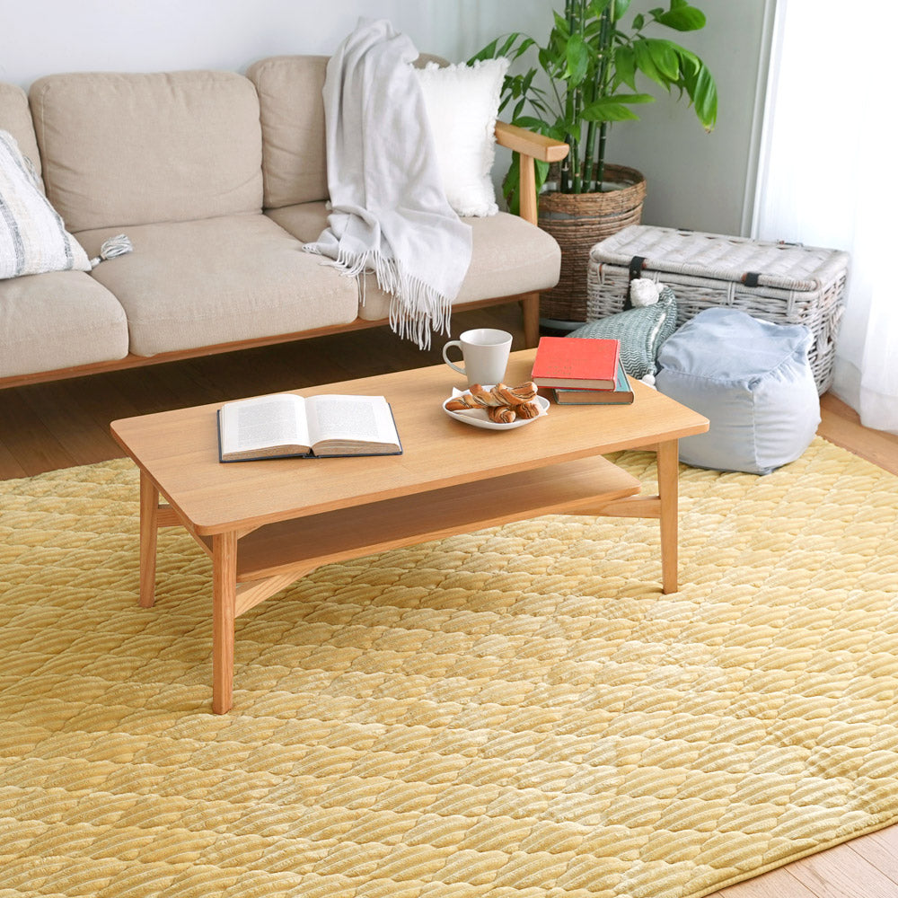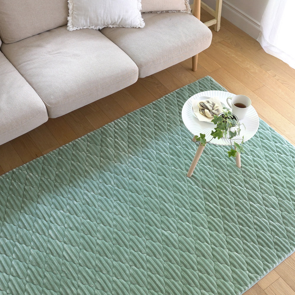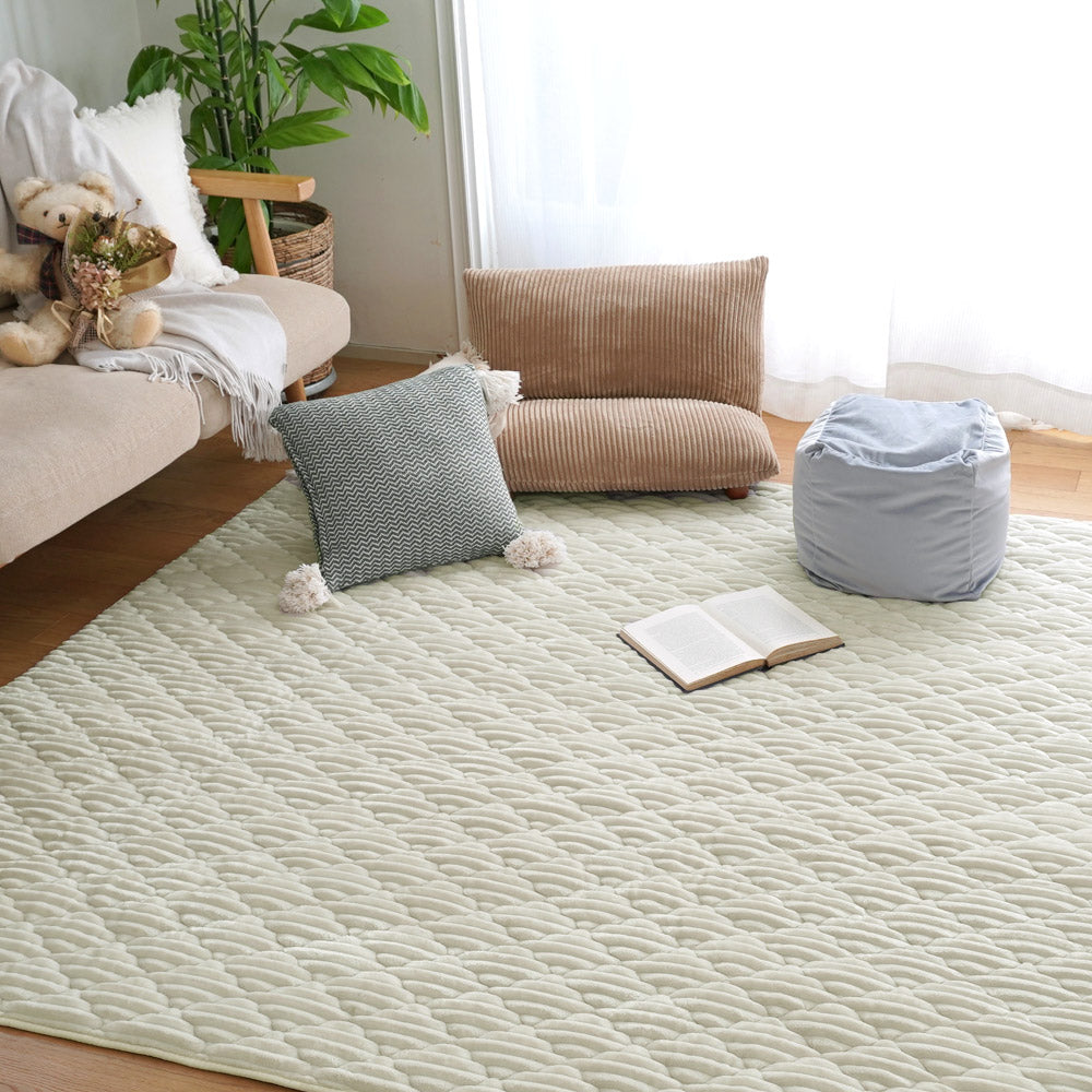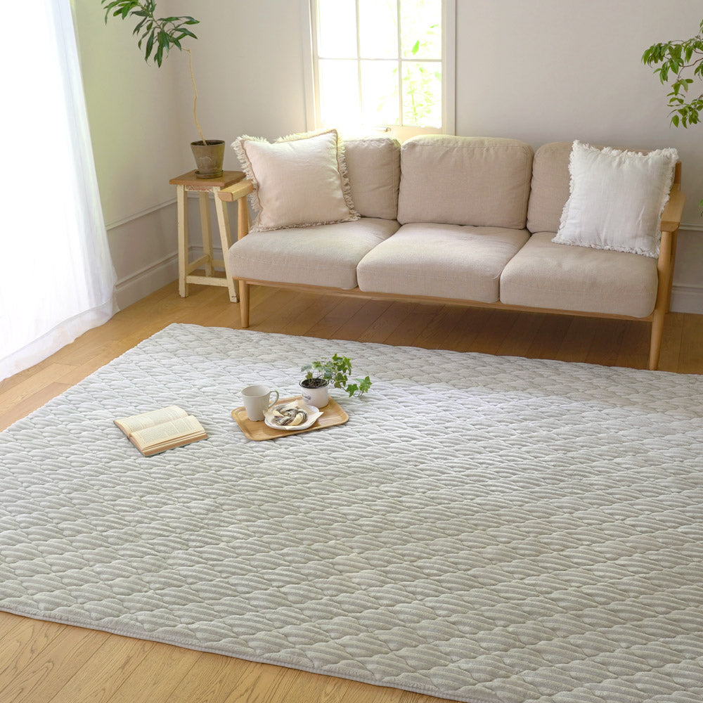 ふんわり滑らかな触り心地のファブリックラグです。洗濯機で丸洗い可能で、衛生的に使用できます。足元が冷たい季節は床暖房やホットカーペットの上でも使用可能です。