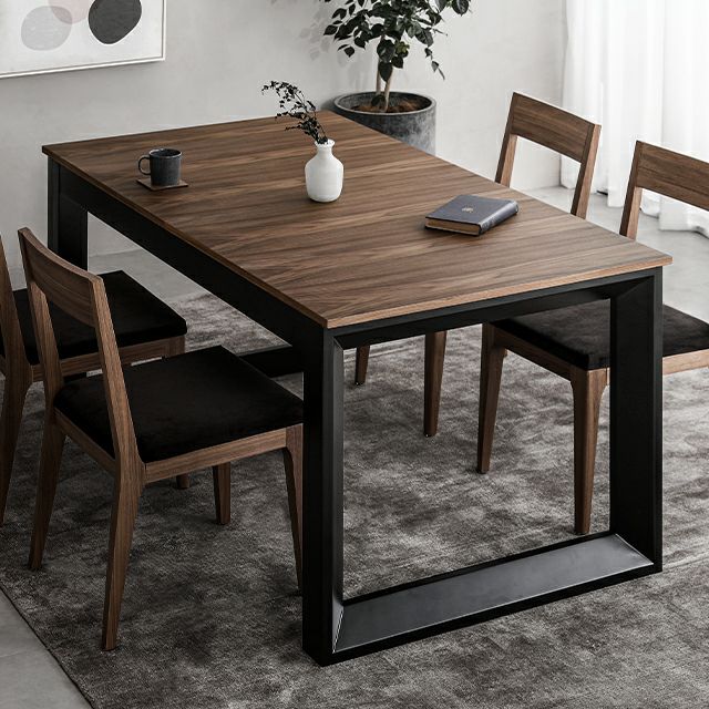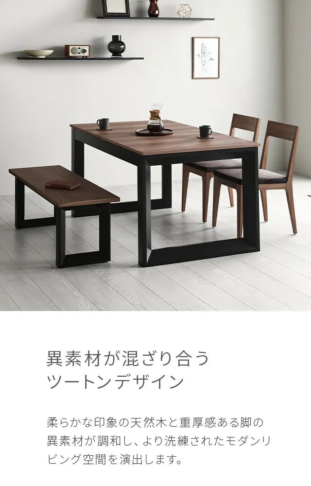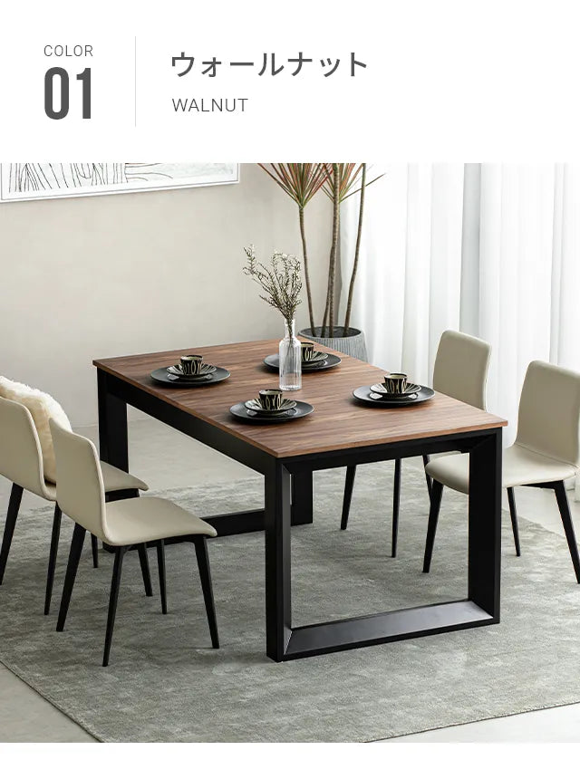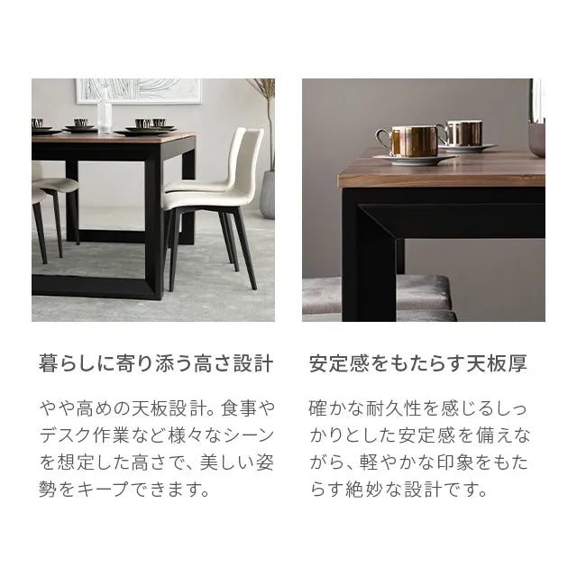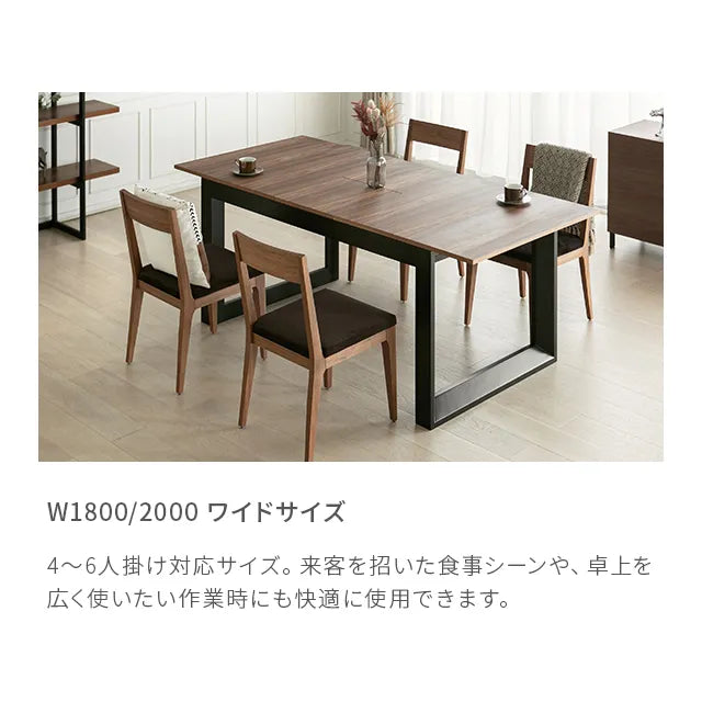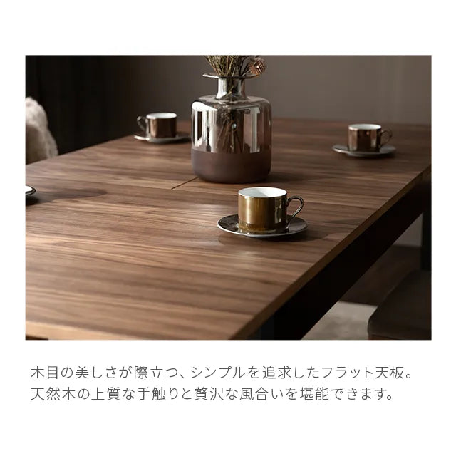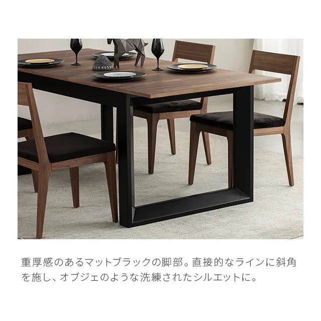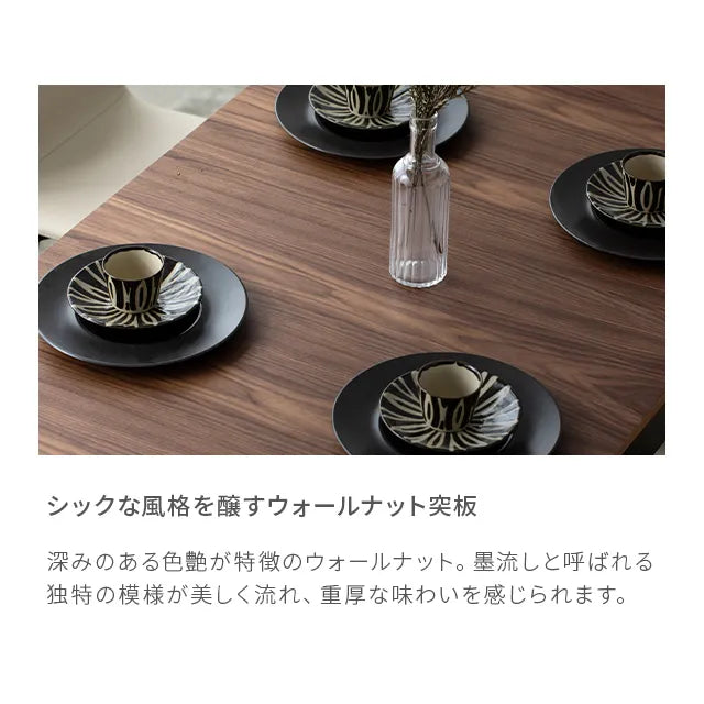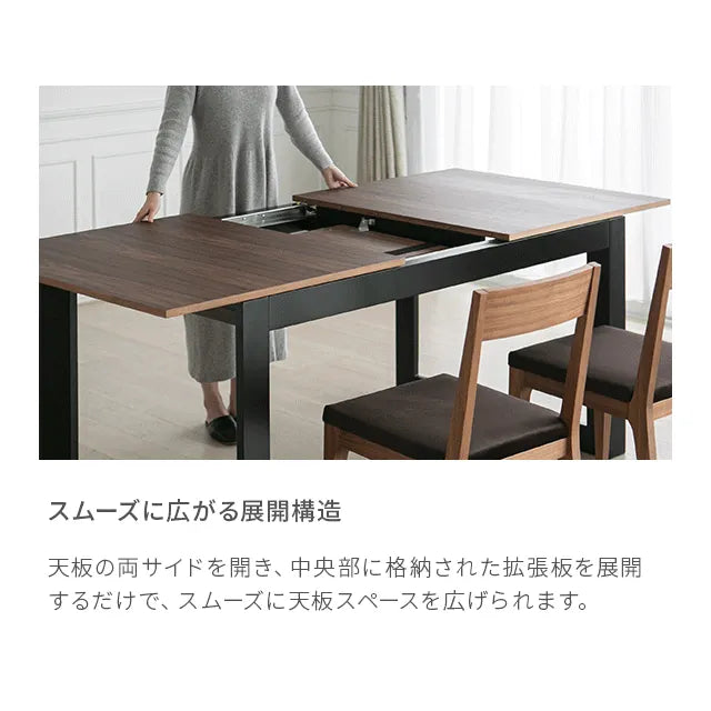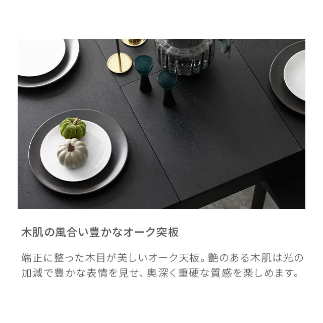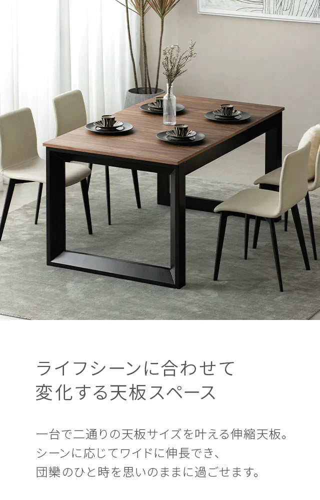 配色や素材感のコントラストが目を惹く美しいデザイン。伸縮式天板で機能性も兼ね備えたダイニングテーブルです。