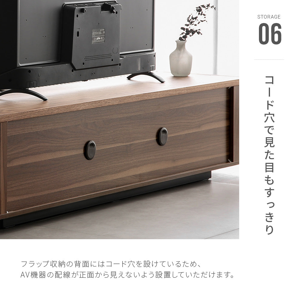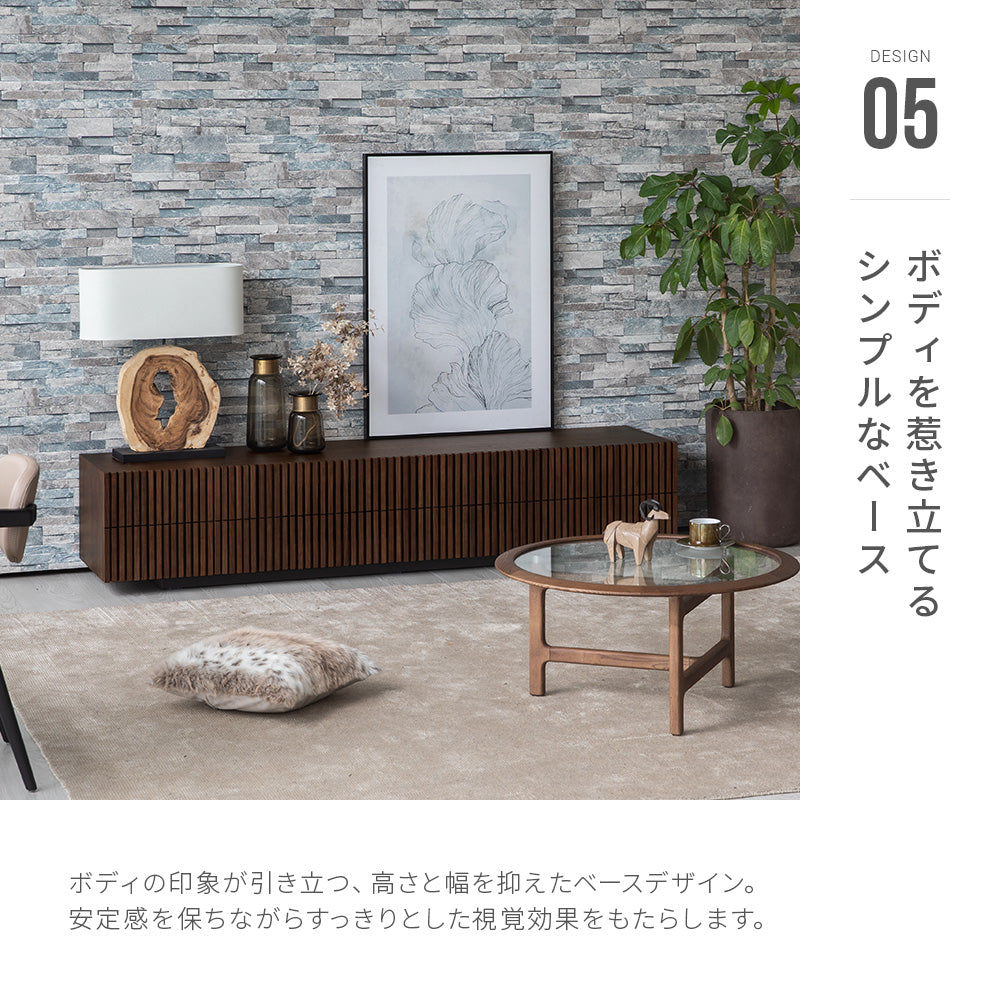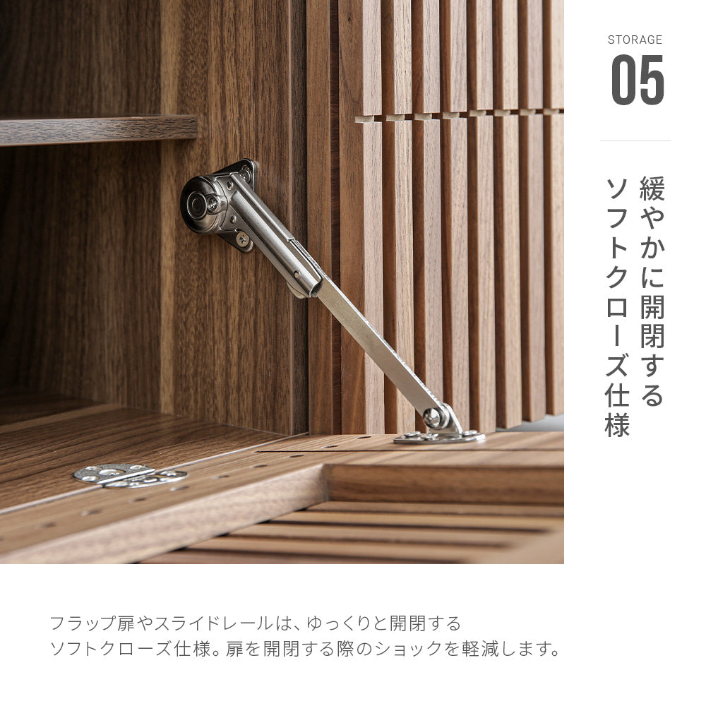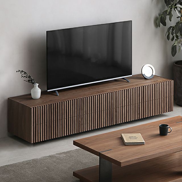 木目の存在感を活かした優美なルーバーデザインのテレビボード。時代に流されない端正な佇まいが長く愛される一台です。