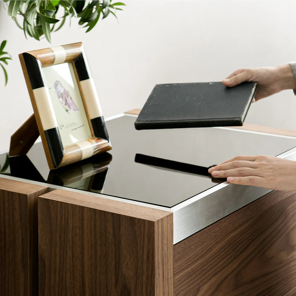 ウォールナット突板, オーク突板, 人工ゼブラ突板, 強化ガラスステンレス
