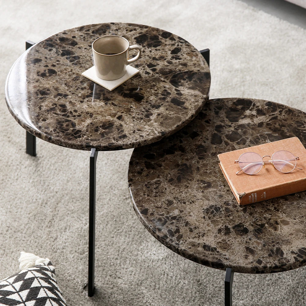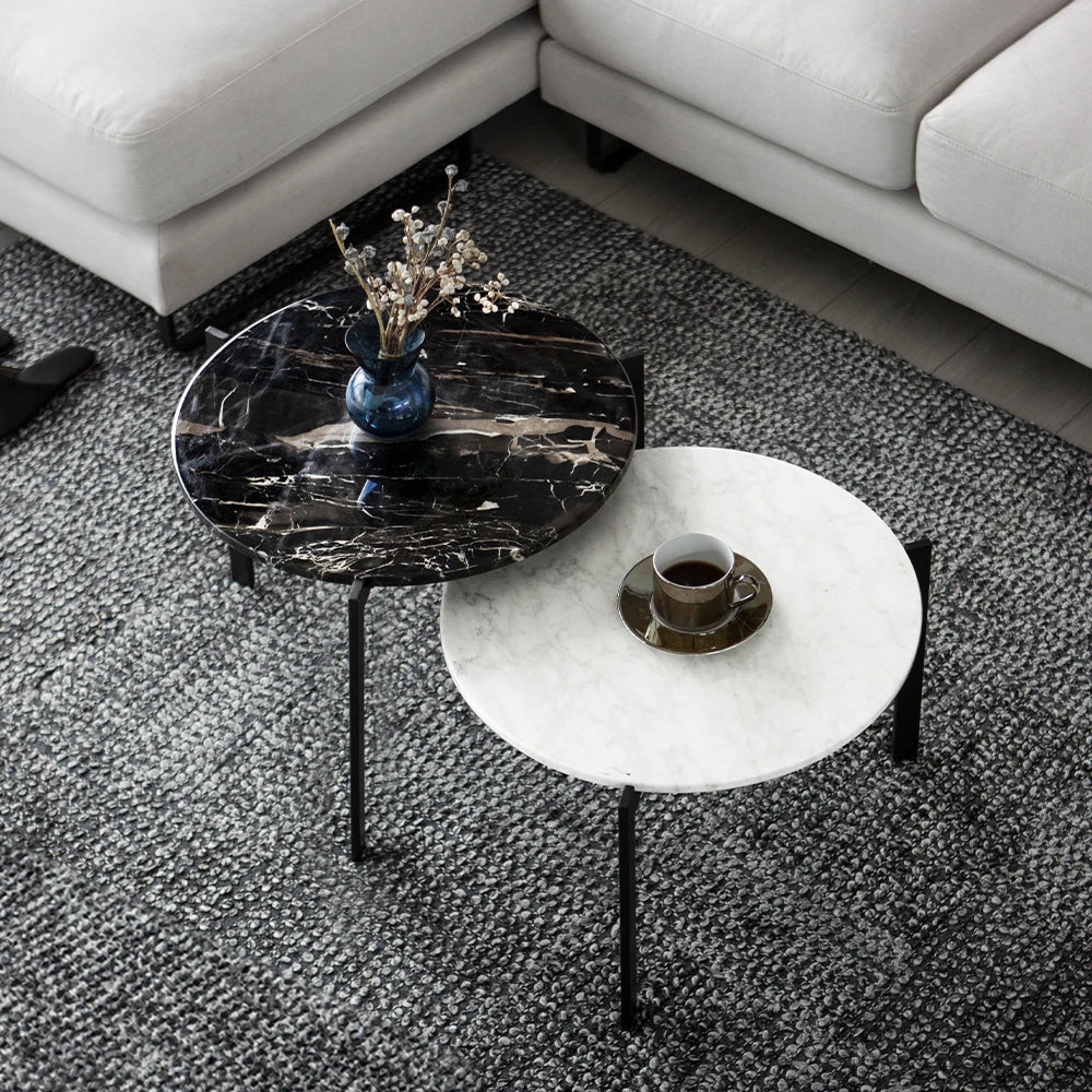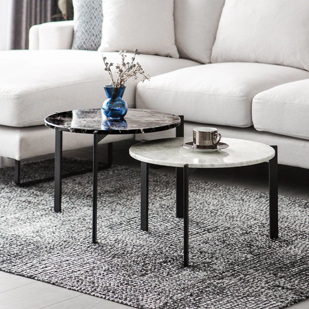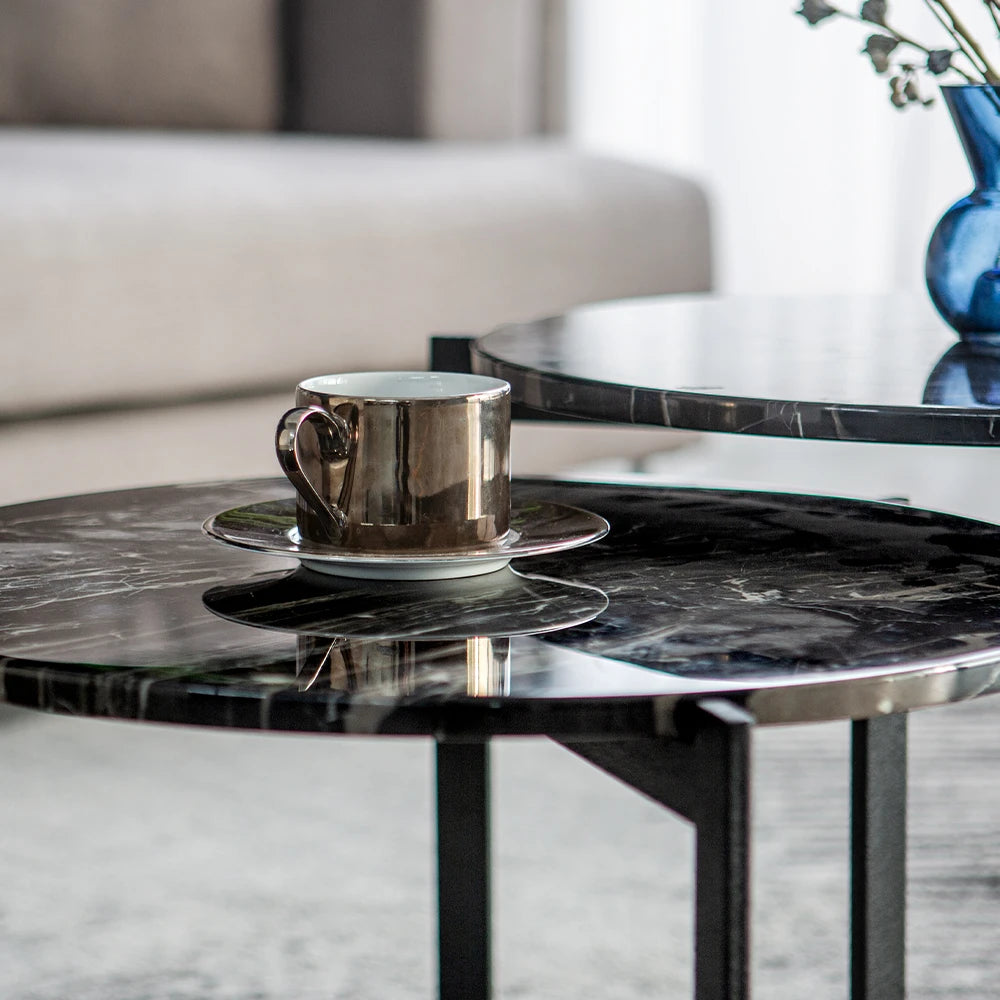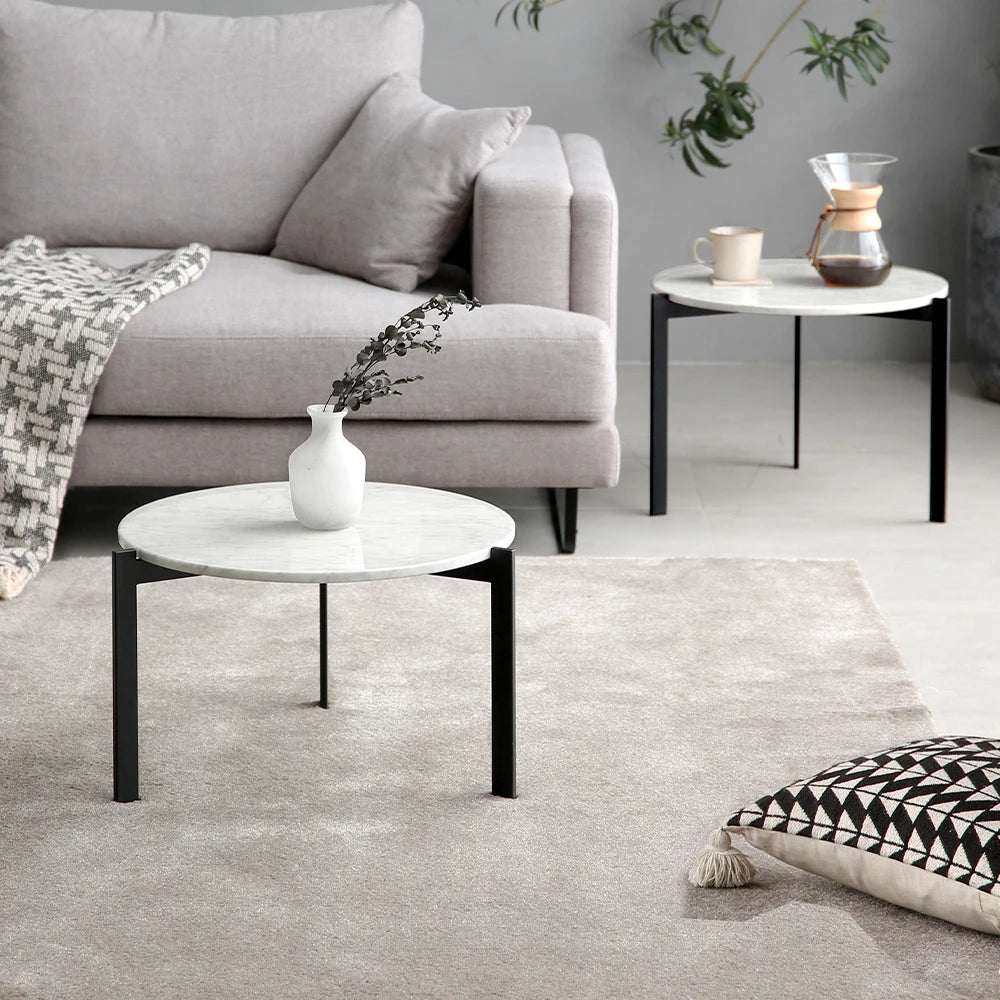 気品あふれる天然大理石の美しいネストテーブル。組み合わせても単体でもシーンに合わせて使える実用性も備えています。