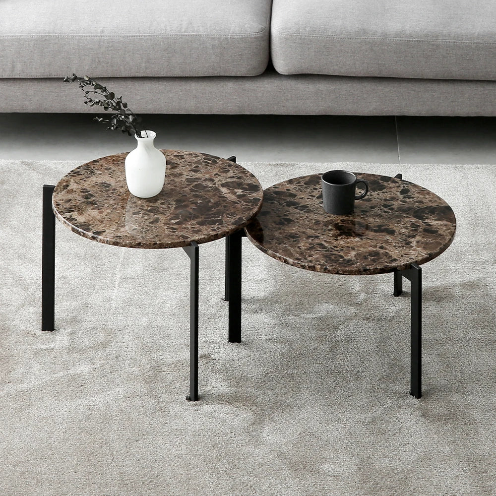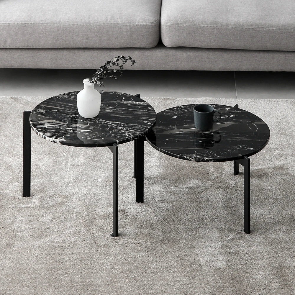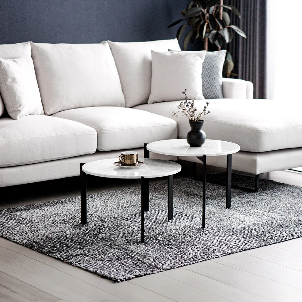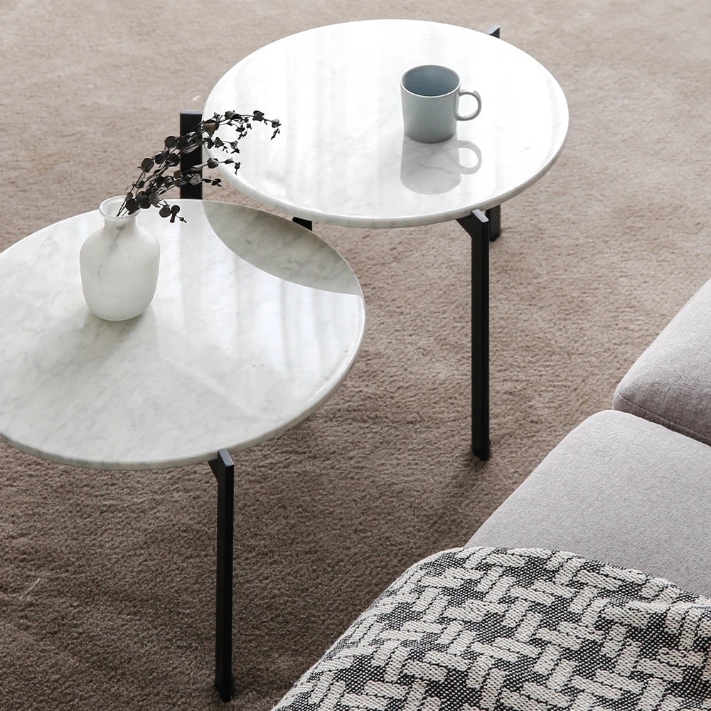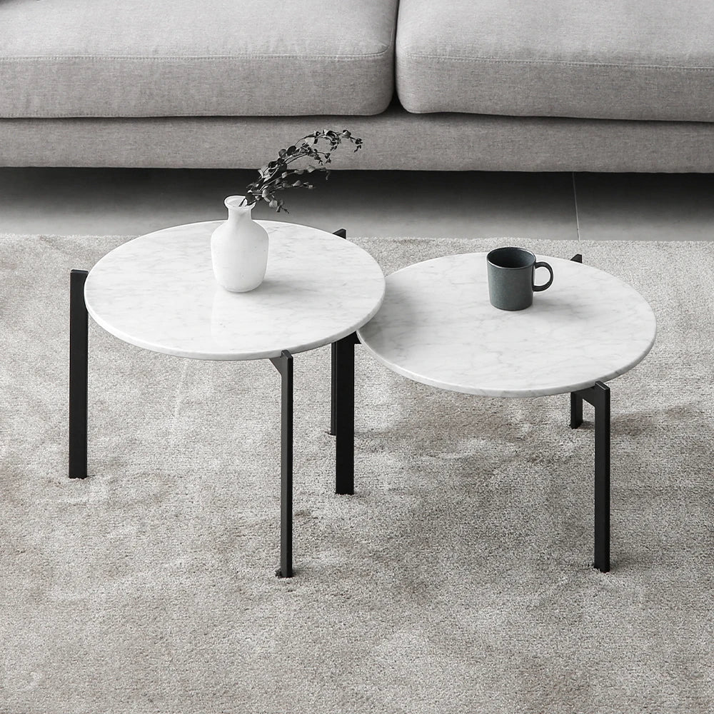 気品あふれる天然大理石の美しいネストテーブル。組み合わせても単体でもシーンに合わせて使える実用性も備えています。