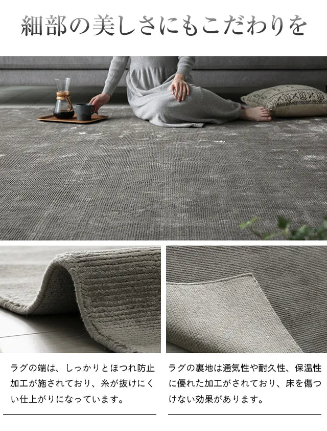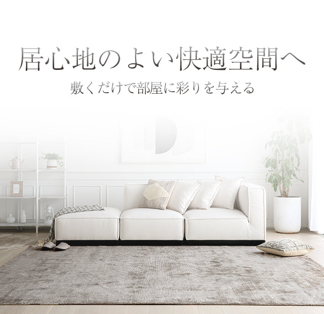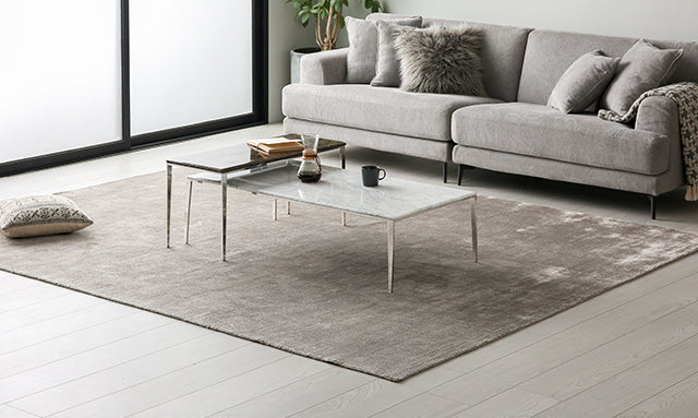 毛足の密度が高くしっとりとした触り心地のラグ。落ち着きのある色味はモダンな雰囲気を演出します。