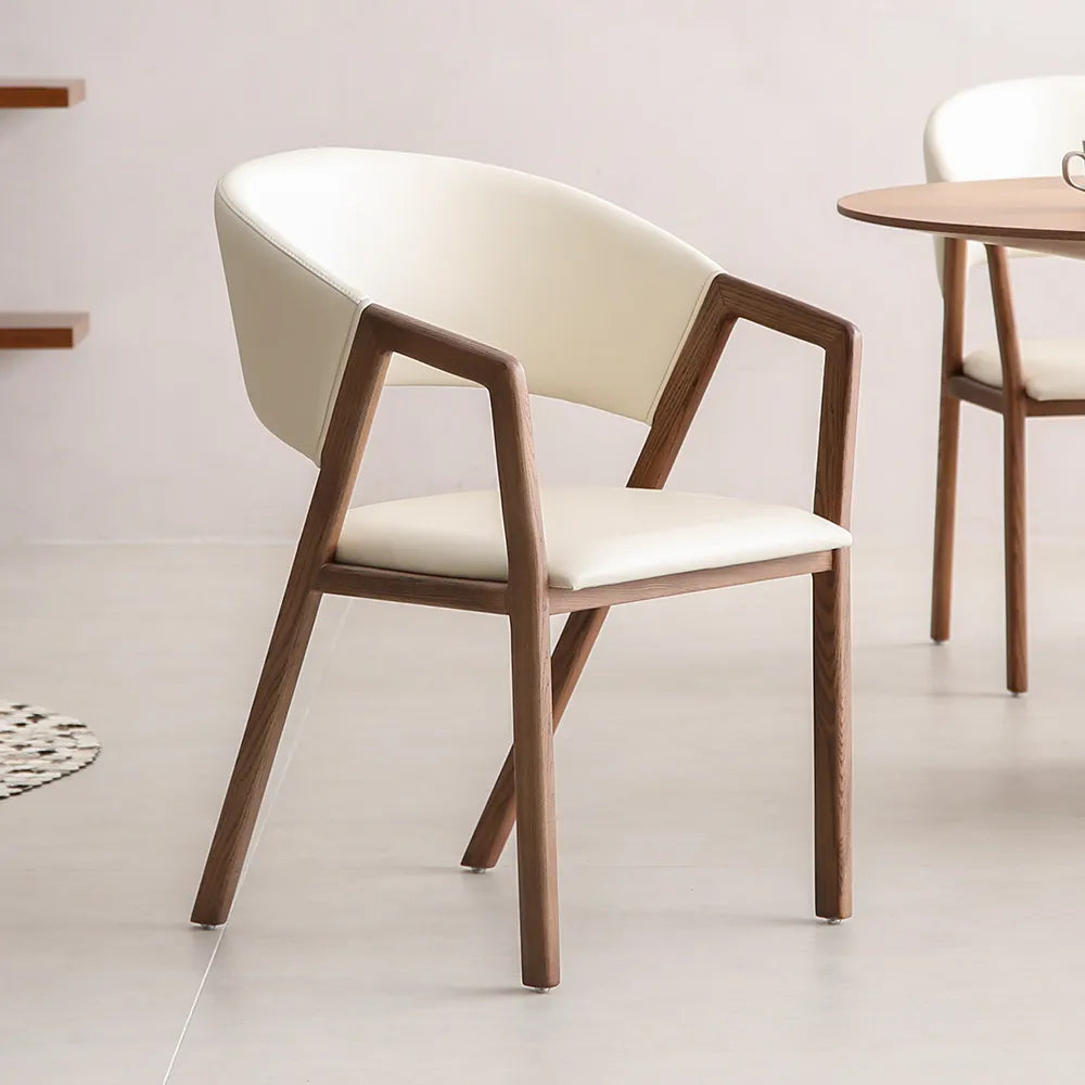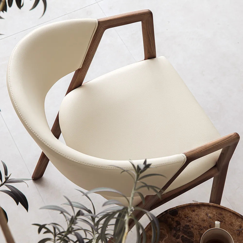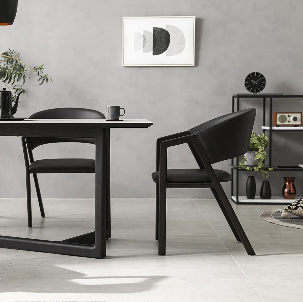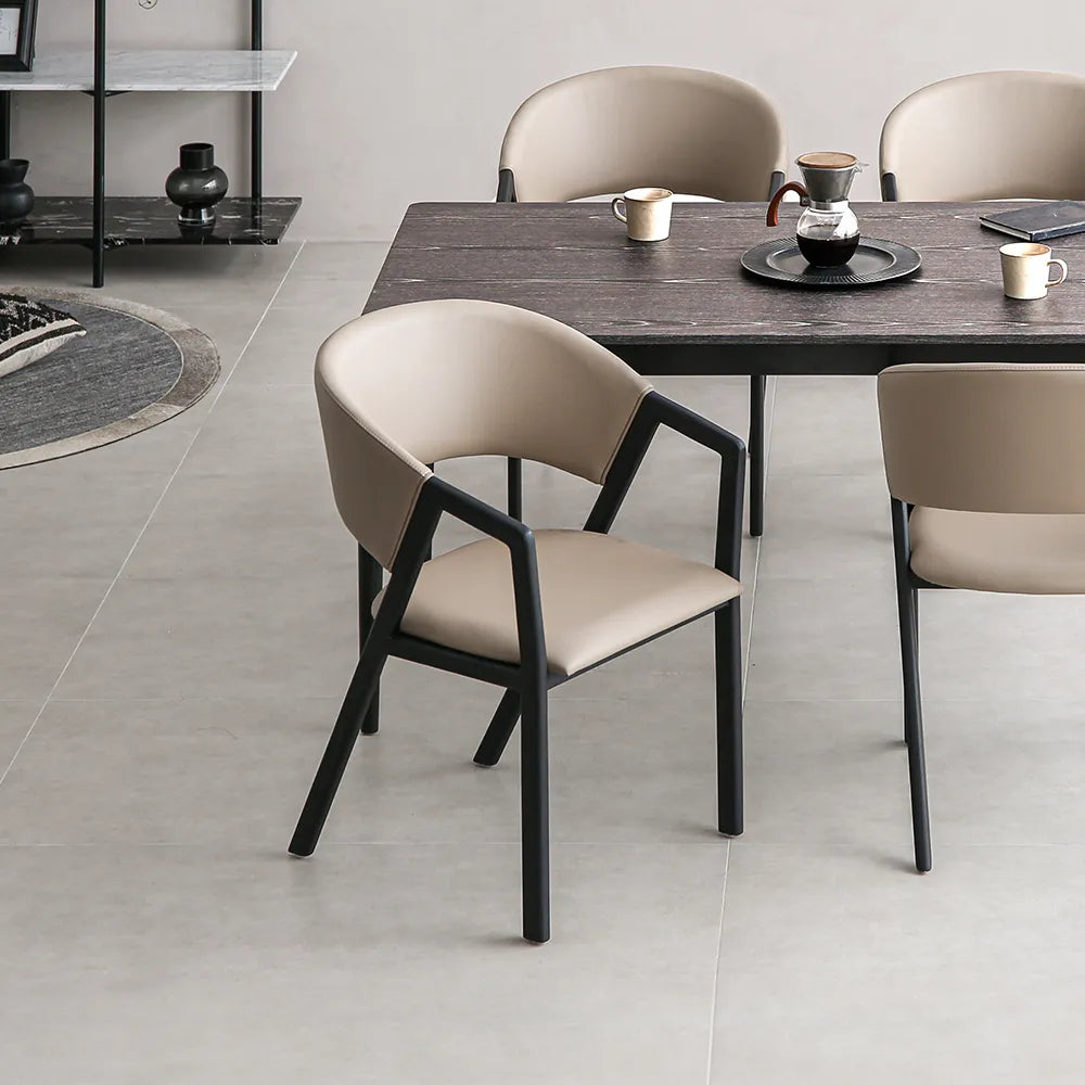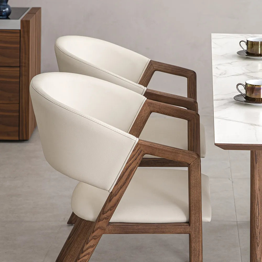 体を包み込むようなラウンドしたフォルムが優美なダイニングチェア。素材の豊かな風合いと快適性に満たされる一脚です。