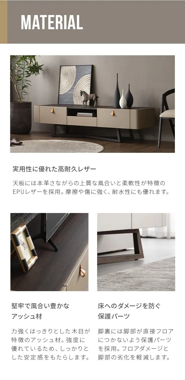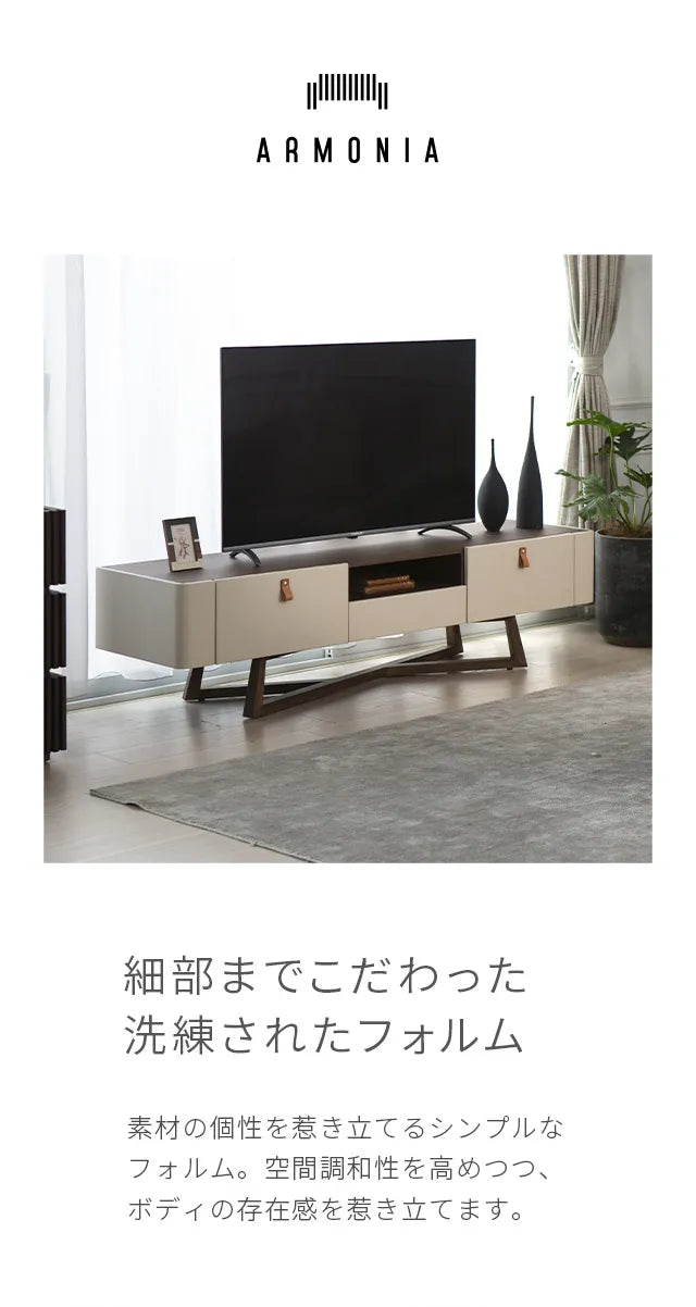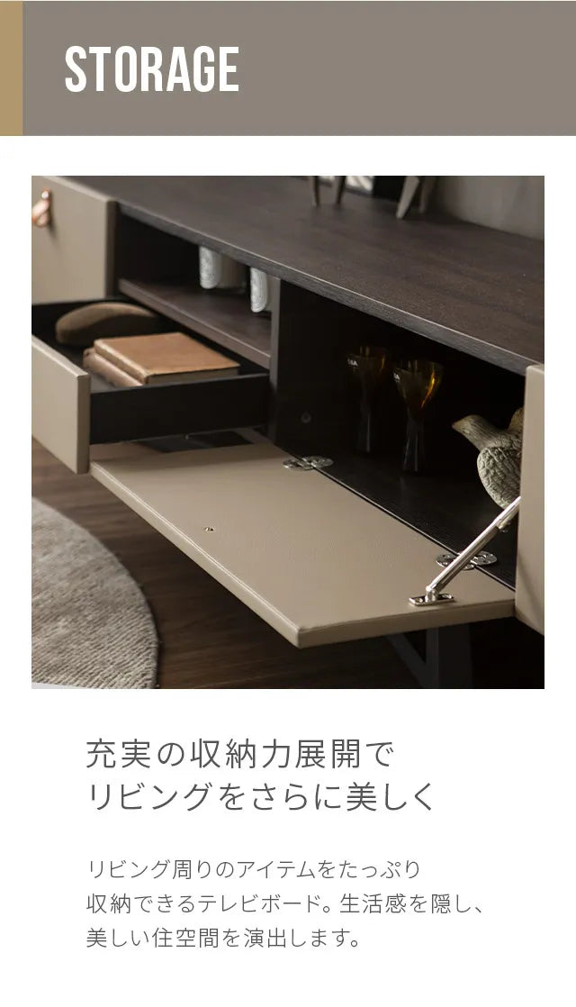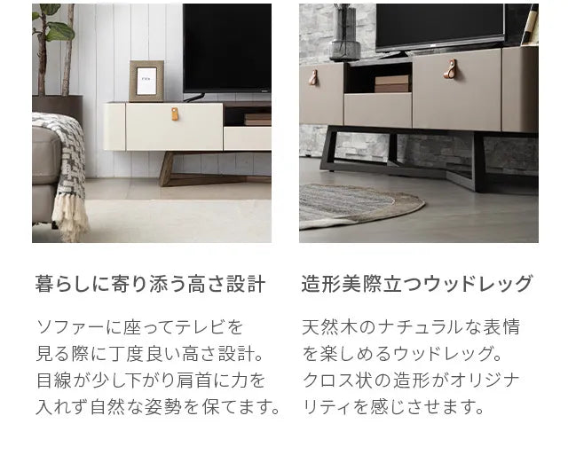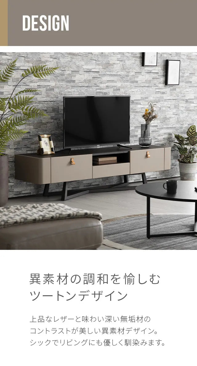 シンプルで洗練されたフォルムに異素材の融合が美しいモダンデザイン。リビングをワンランク上に演出します。