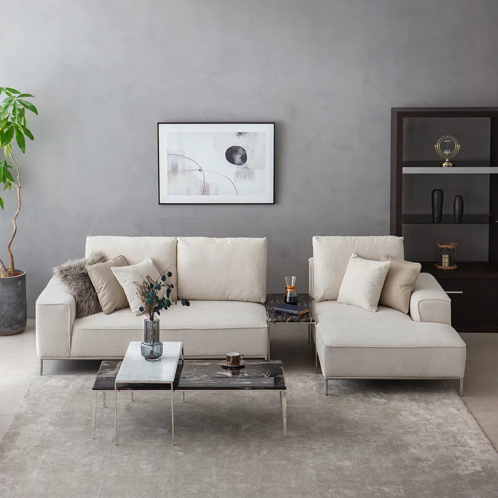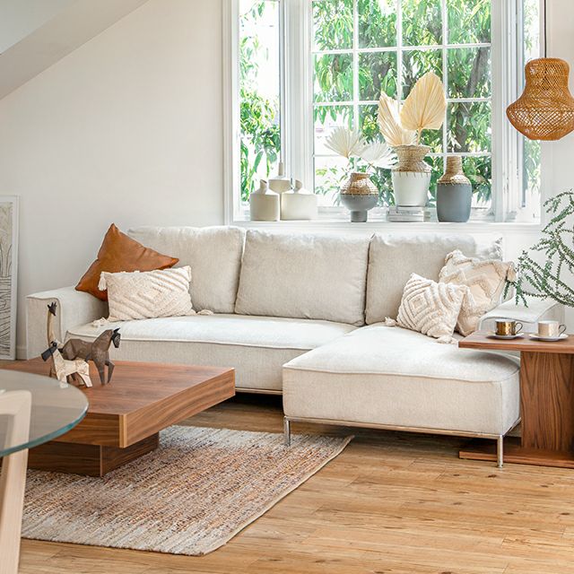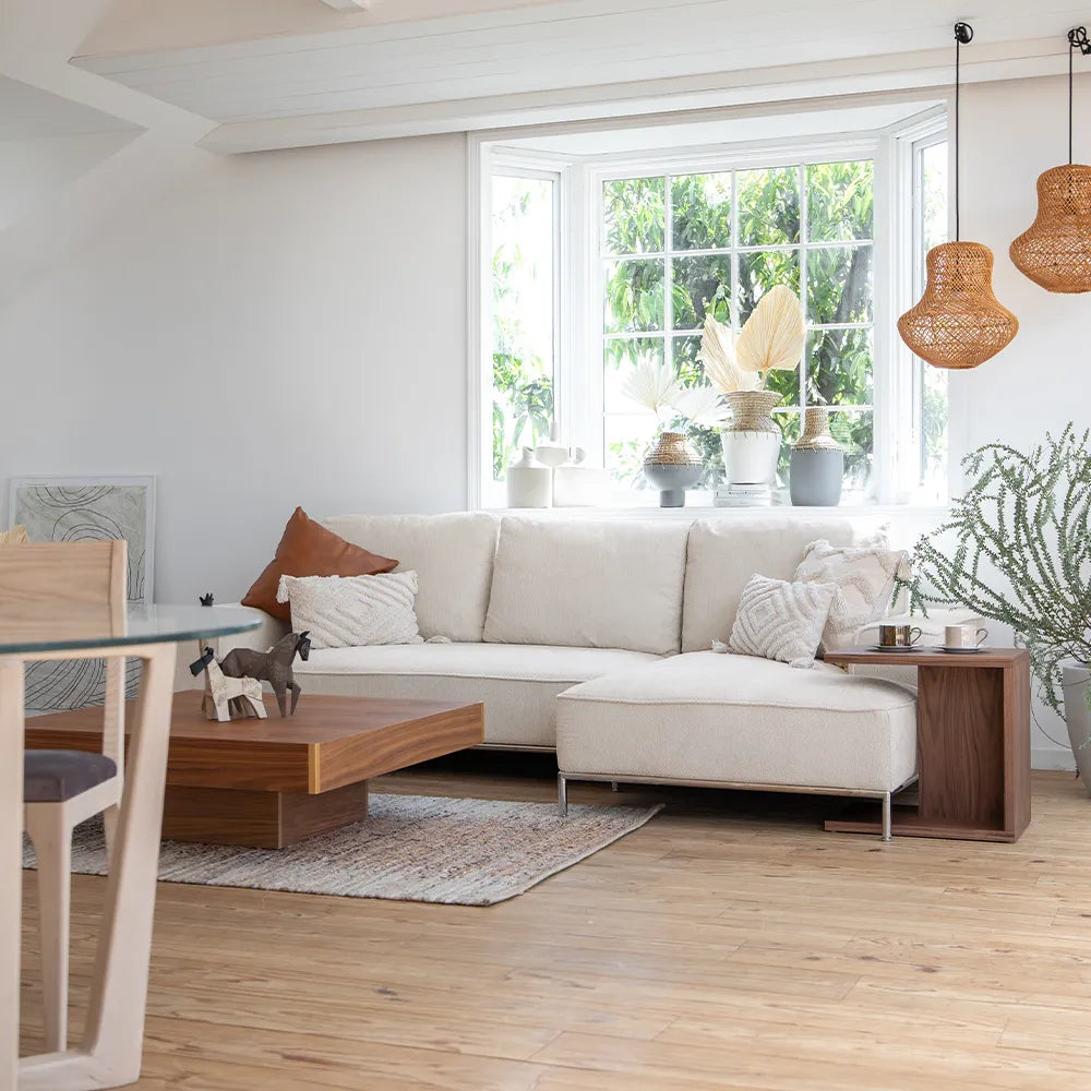 上質なマテリアルとゆとりあるサイズ感がもたらす快適性。直線を活かした優美なフォルムがモダンリビングを演出します。