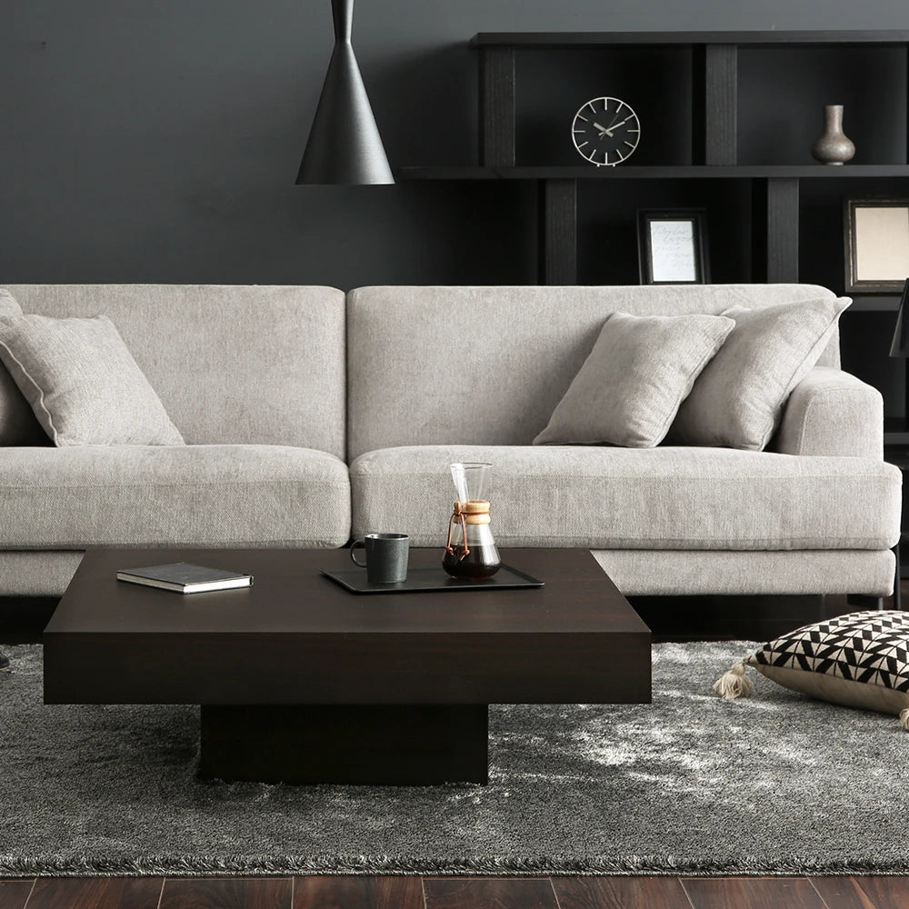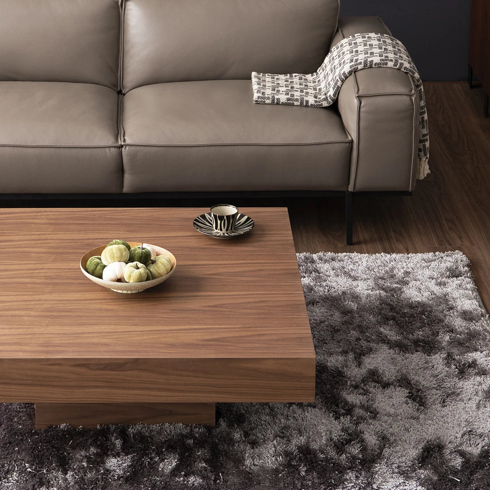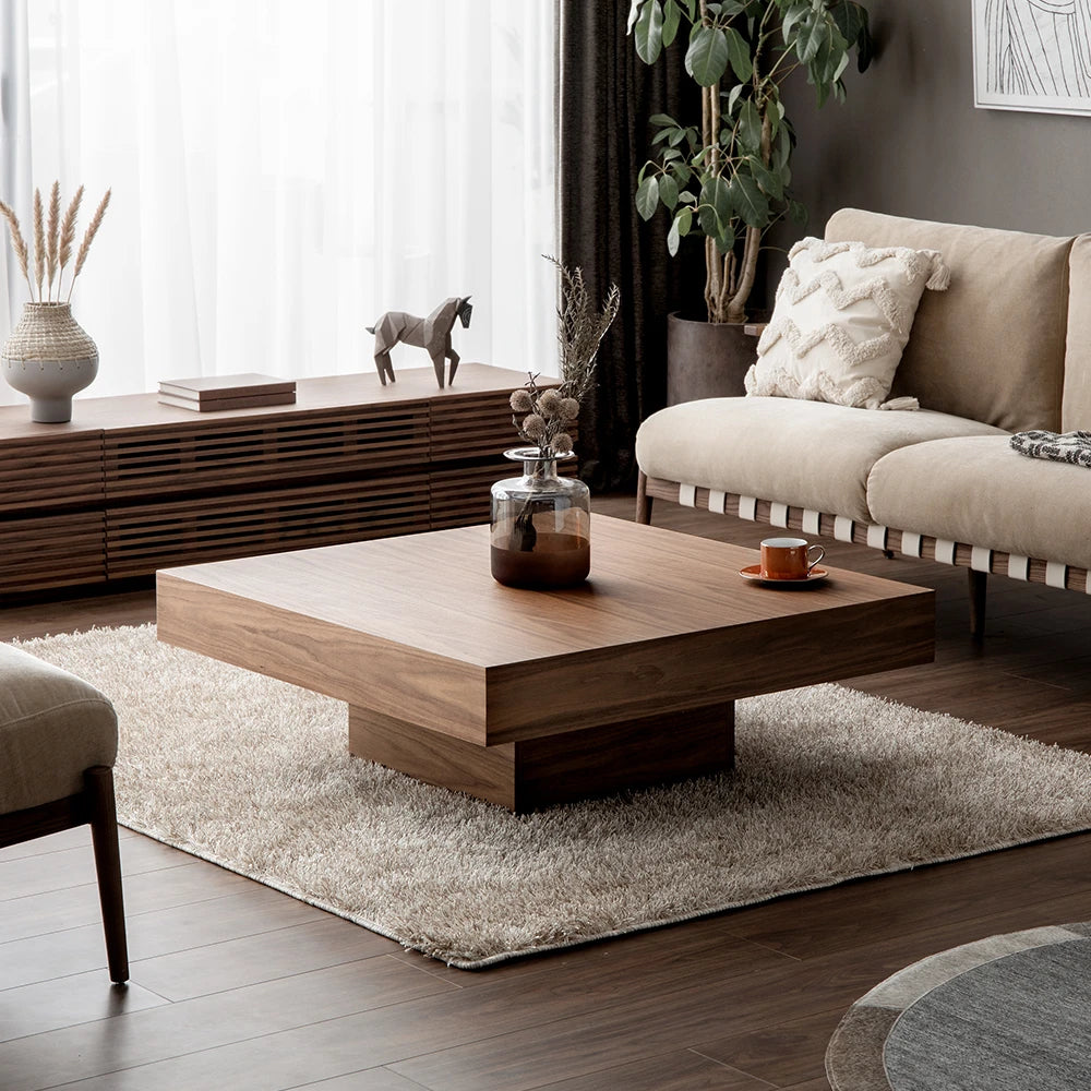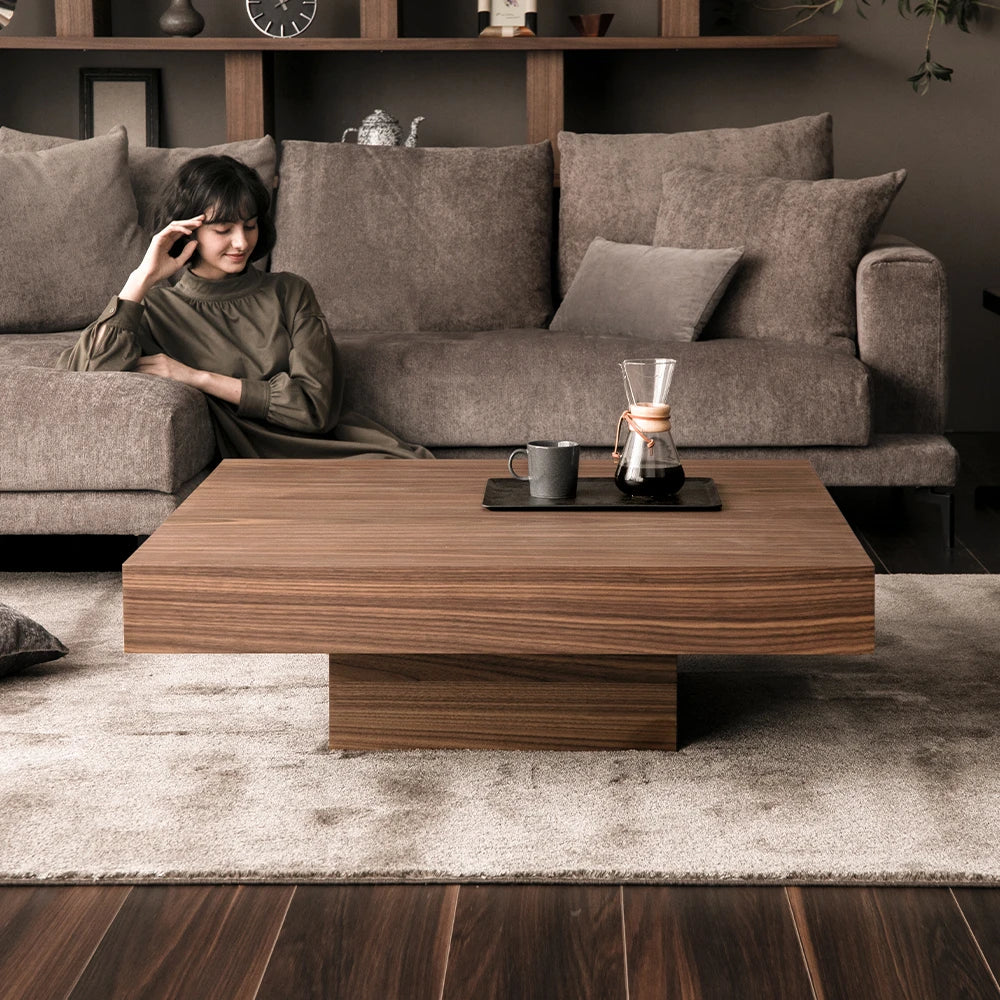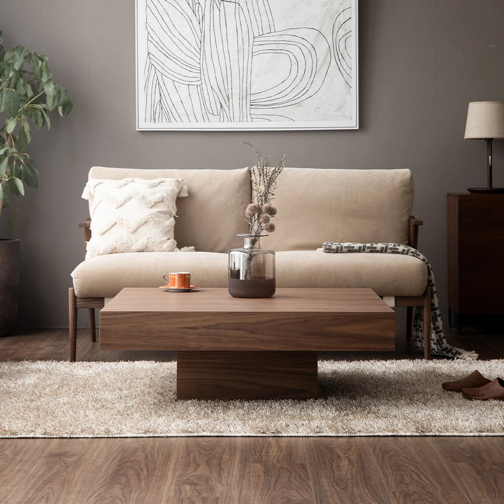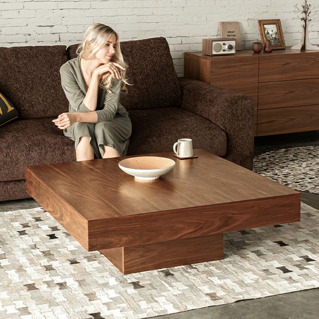 天板からベースまで全てに天然木を使用した贅沢なローテーブル。リビングの主役をしてふさわしい風格を醸します。