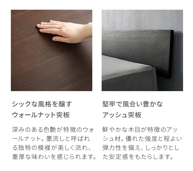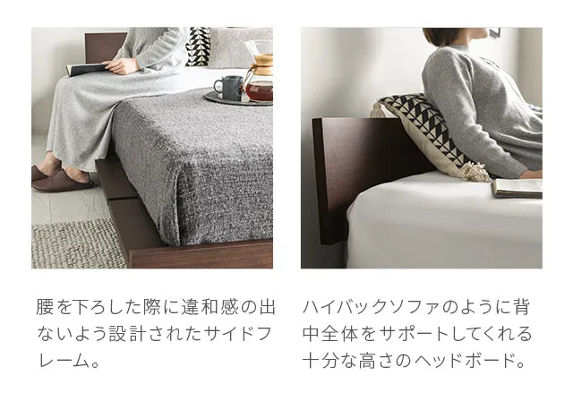 全体をウッドで仕上げたリラックスムード漂う一台。身体も心も満たされる、上質な眠りを追求したべッドです。