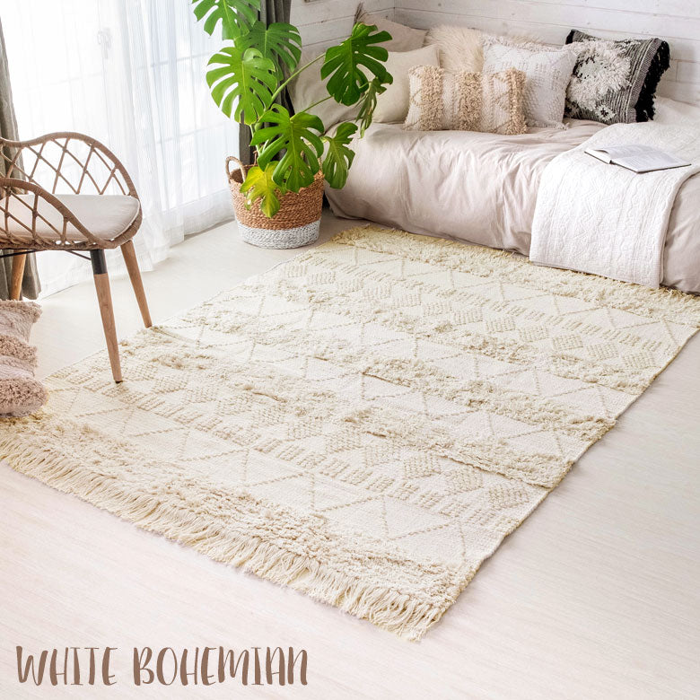 ホワイトボヘミアン柄 ラグ [140×200cm]