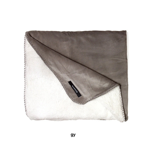 「GUIMAUVE」はフランス語でマシュマロの意味。伸縮性のあるしっとりなめらかな表生地に暖かいボアを合わせることで、その名の通り軽くてもっちりとした仕上がりのブランケット。伸縮性があるのでぴたっと体にくっつく感じで冬の寒さから守ります。上品で光沢のある表生地と暖かさのある裏生地は両面とも、手触りの良さを兼ね備えています。ひざ掛けにちょうどいいサイズです。