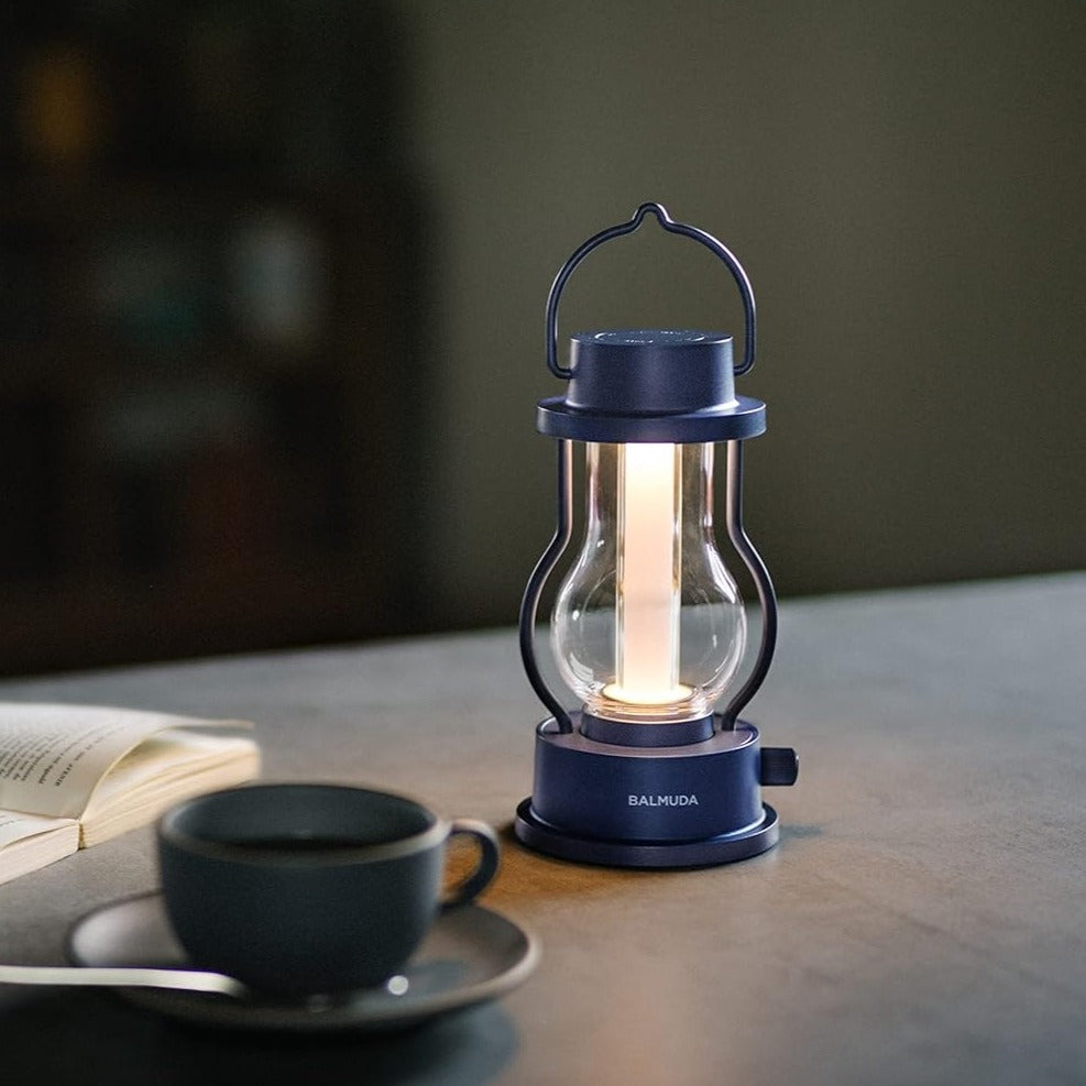 BALMUDA The Lanternは、キャンドルのように揺らぐ暖色の灯りから、読書灯にも使える温白色の灯りまで楽しめるLEDランタンです。バッテリー内蔵で部屋中どこでも、アウトドアにも持ち出してお使いいただけます。