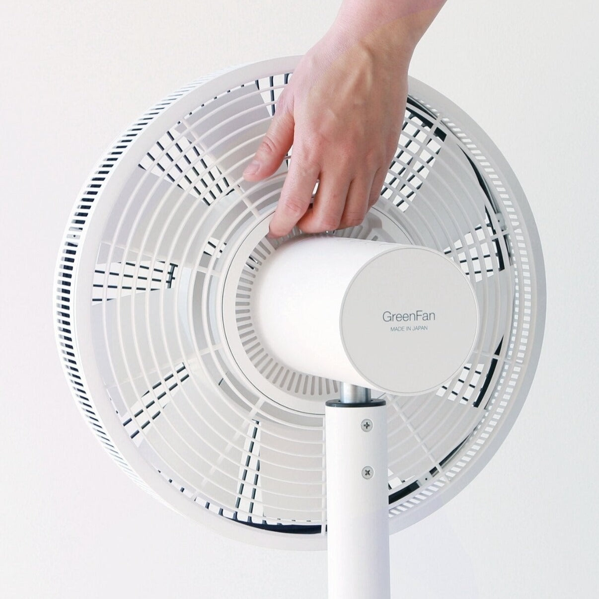 The GreenFanは、風の質が変わる扇風機です。二重の羽根がつくり出す、大きく包み込むやわらかな風は、浴び続けても疲れない自然界の風のような心地よさです。美しいデザインかつ省エネルギーで超静音です。