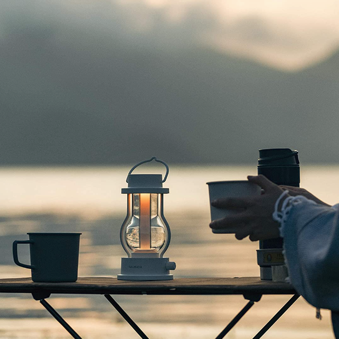 BALMUDA The Lanternは、キャンドルのように揺らぐ暖色の灯りから、読書灯にも使える温白色の灯りまで楽しめるLEDランタンです。バッテリー内蔵で部屋中どこでも、アウトドアにも持ち出してお使いいただけます。
