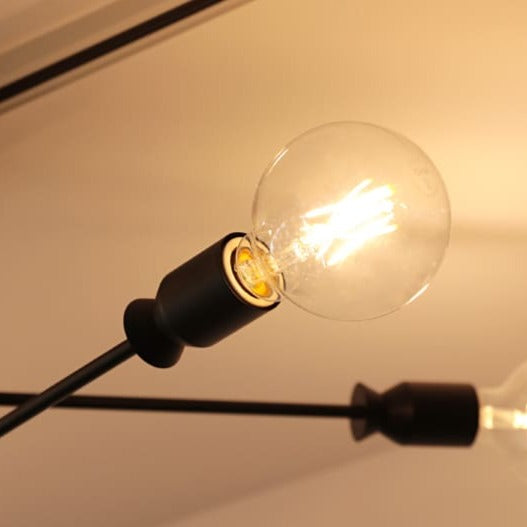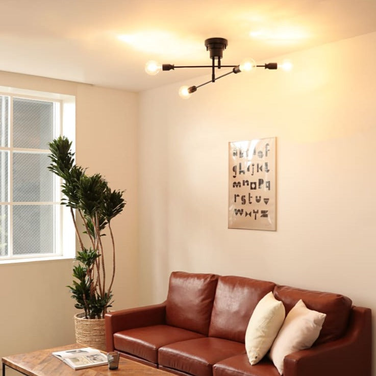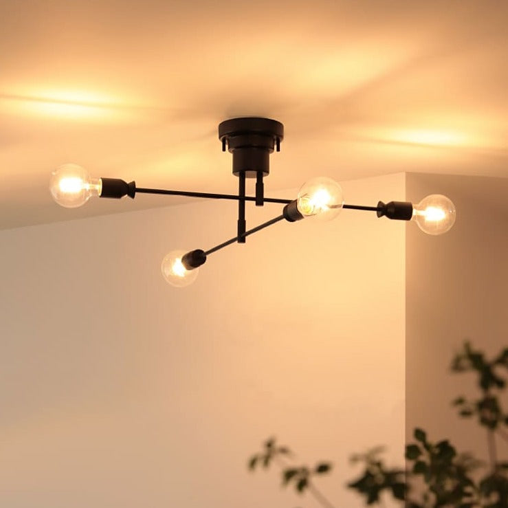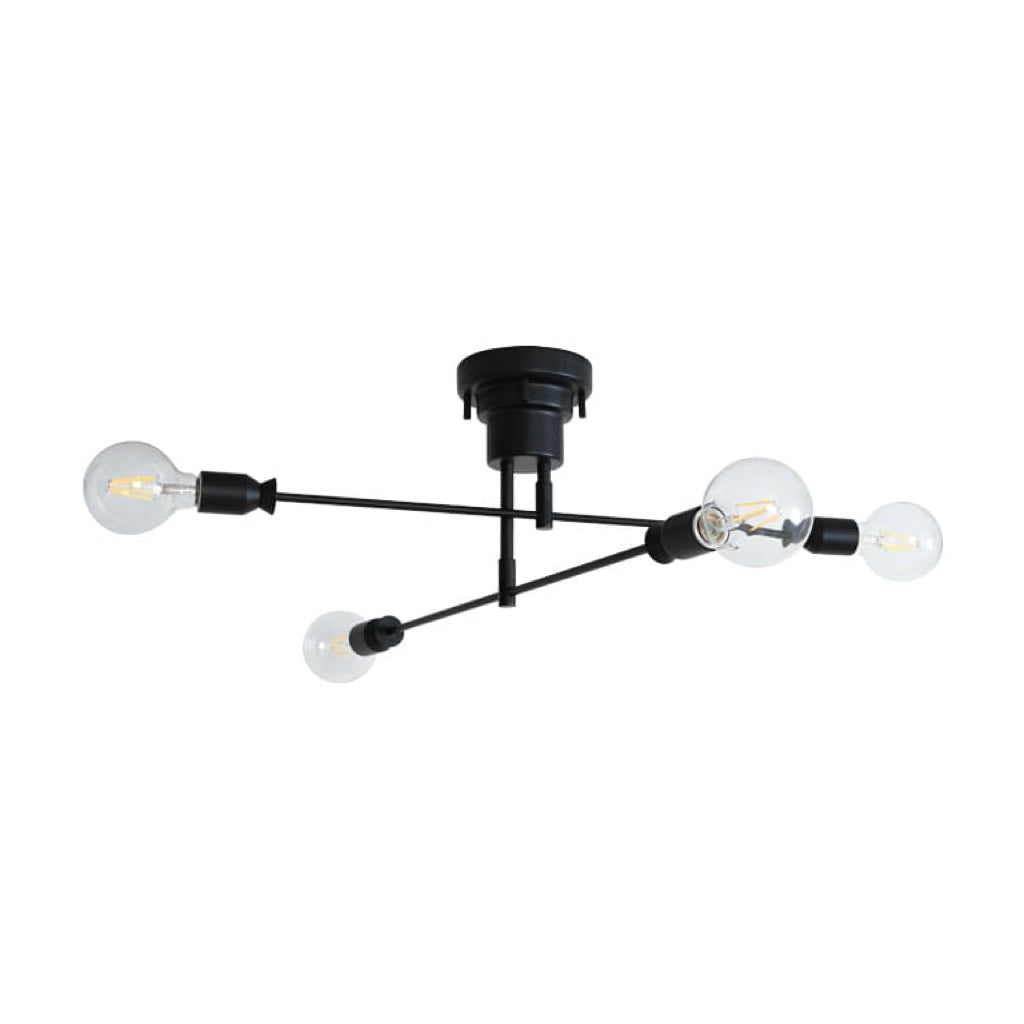 シンプルなカラーリングと電球だけで構成されたシンプルなシーリングライトです。2灯ずつが立体的になったアームは、自由な可動で好きなフォルムを創り出すことができます。また、電球にも特長を持たせることでよりスタイリッシュにもキュートにもなります。