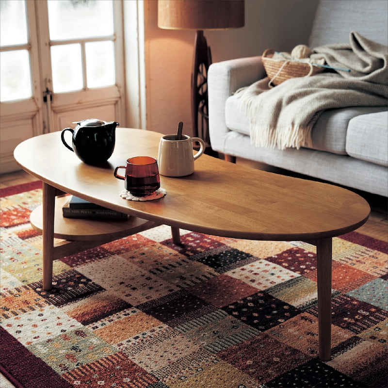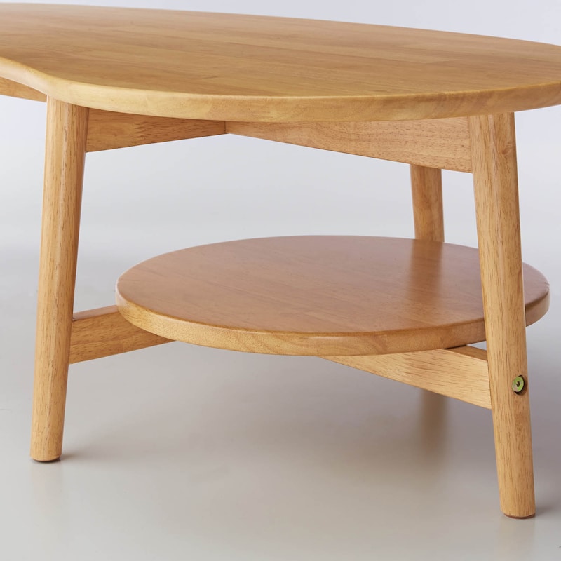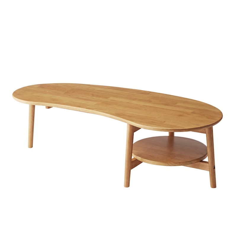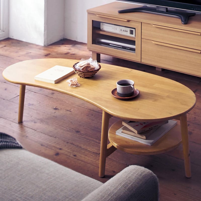 圧迫感なく自由に囲めるフォルムのローテーブルです。天板に角がなく奥行も控えめなので、場所を取らず見た目にも圧迫感がありません。曲線に沿って座ることで会話しやすく、大人数でテーブルを囲めます。