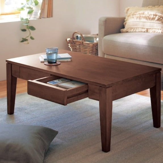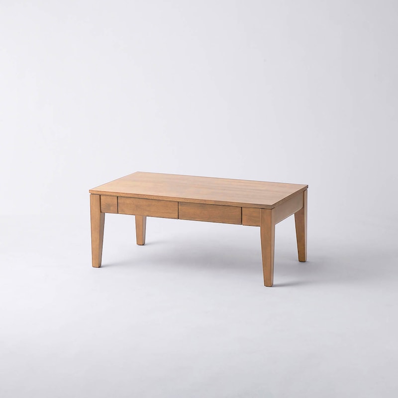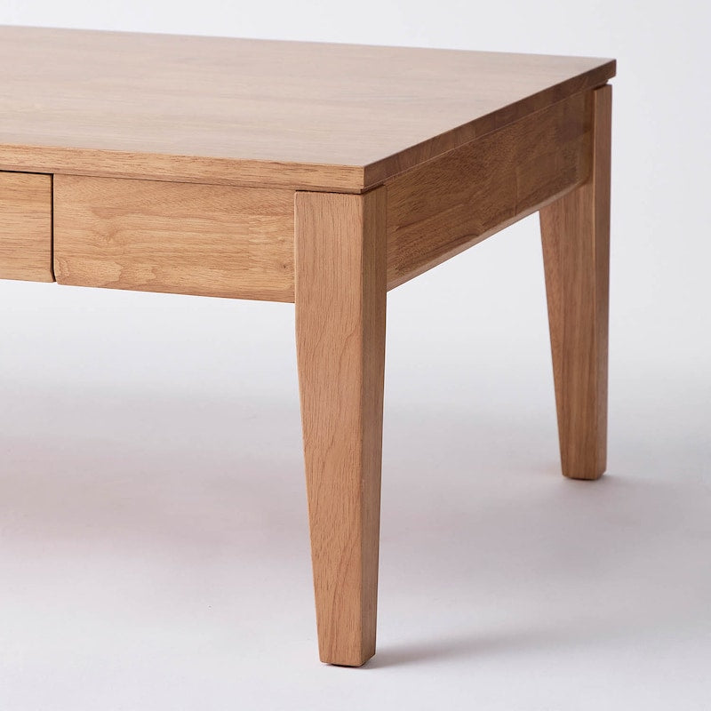 リモコンや文具、新聞など散らかりがちな小物を片付けるのに便利な引出し付きテーブルです。天然木の風合いが特徴で、ディテールにまでこだわったデザインが魅力です。ソファー前にもちょうどいい高さです。