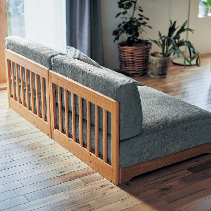 タモ材フレームのゆったり座れるカバーリングユニットソファ