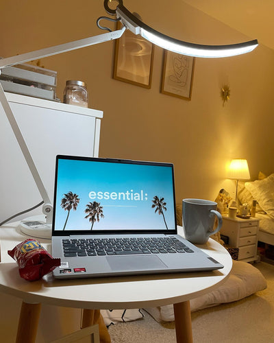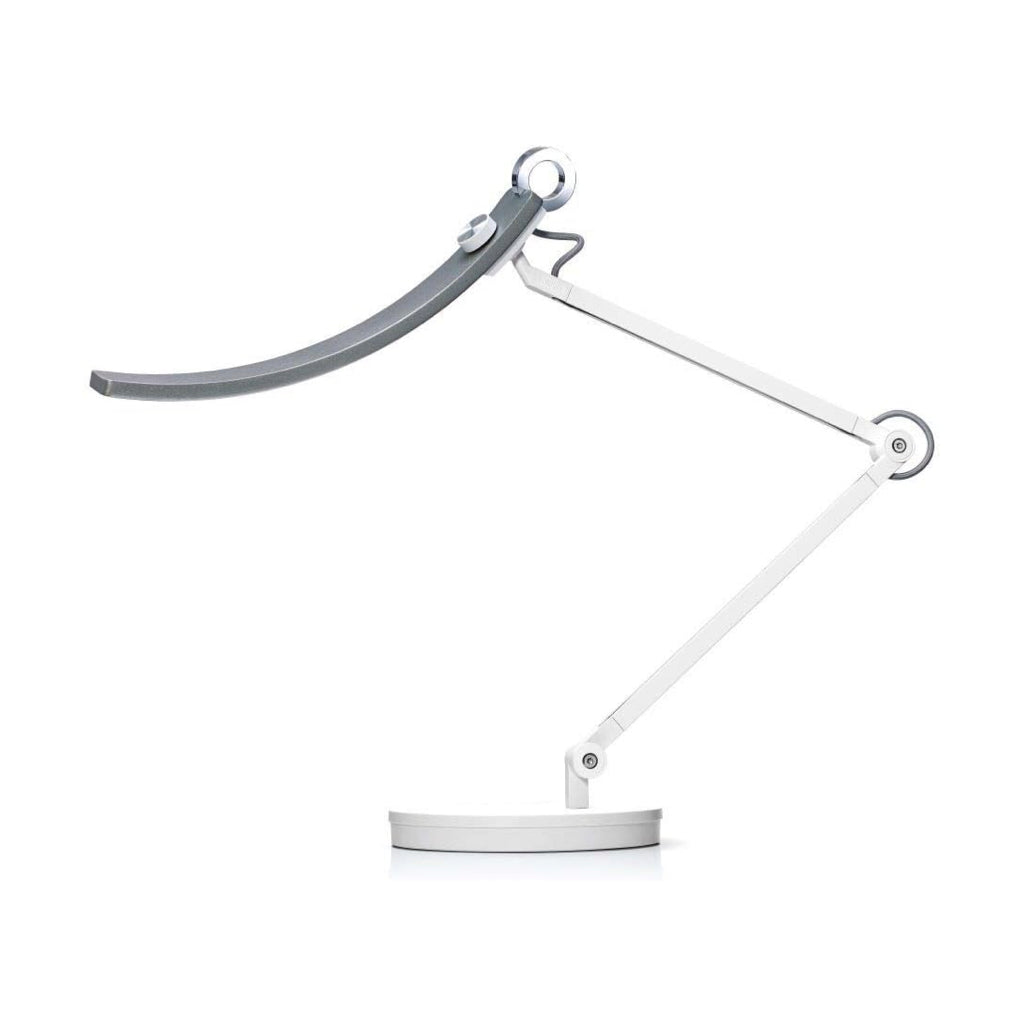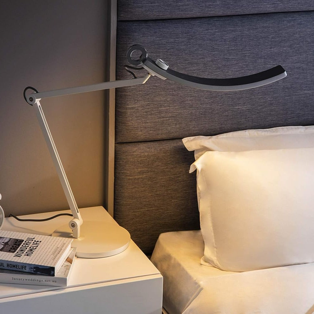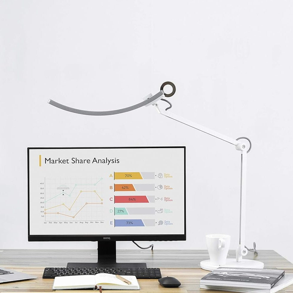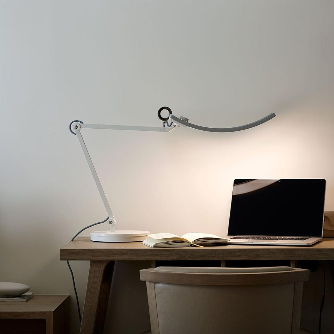 独自のカーブ形状により、デスク全体を明るく照らし、一般的なデスクライトの1.5倍以上の広さを照らします。金属のリング部分に軽く触れるとライトが点灯します。独自設計のスマイル型ライトヘッドで広範囲な照明を使用できます。