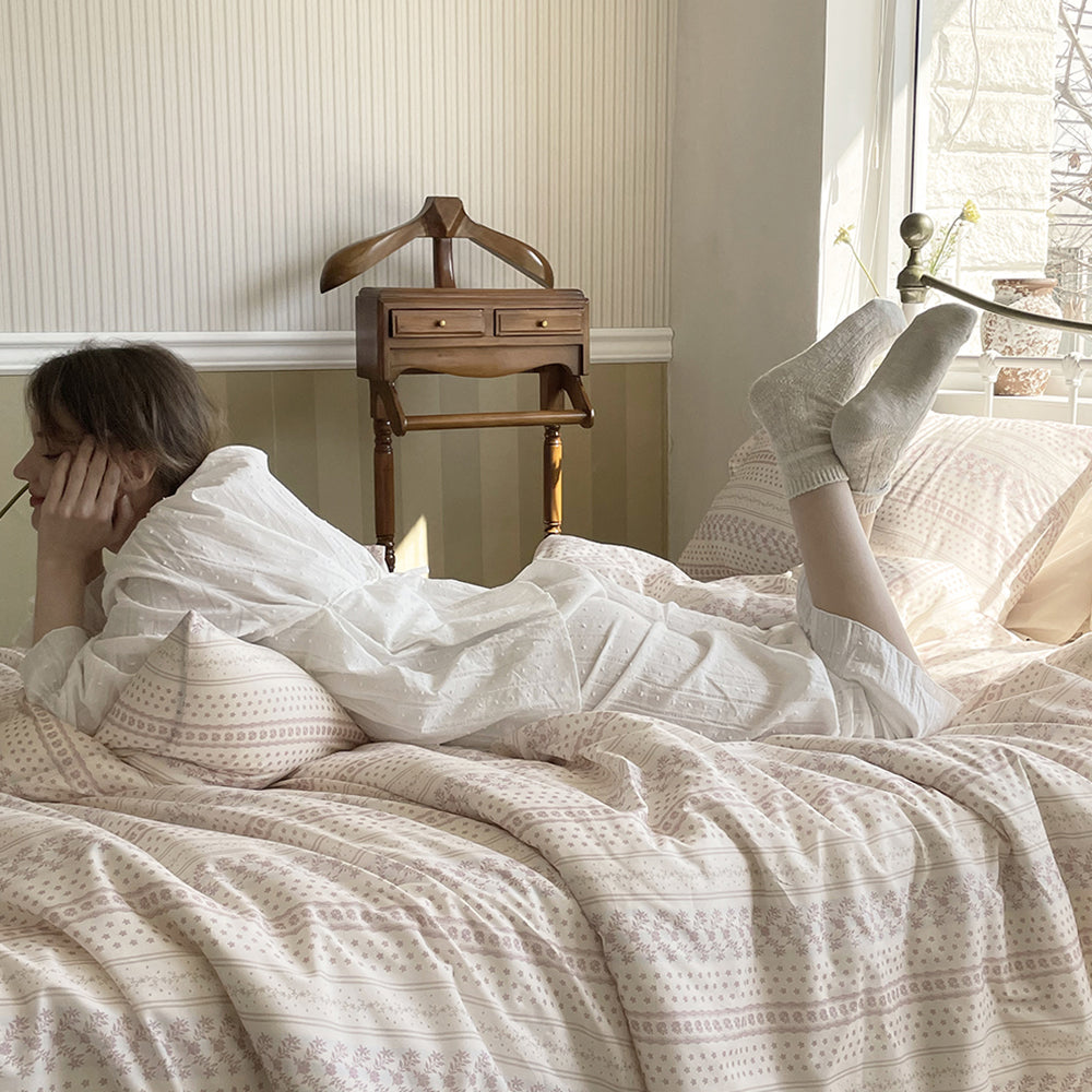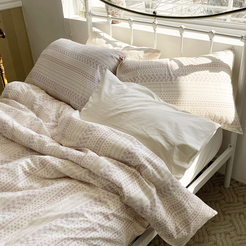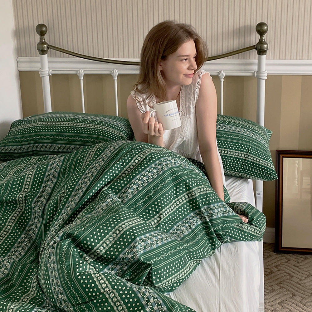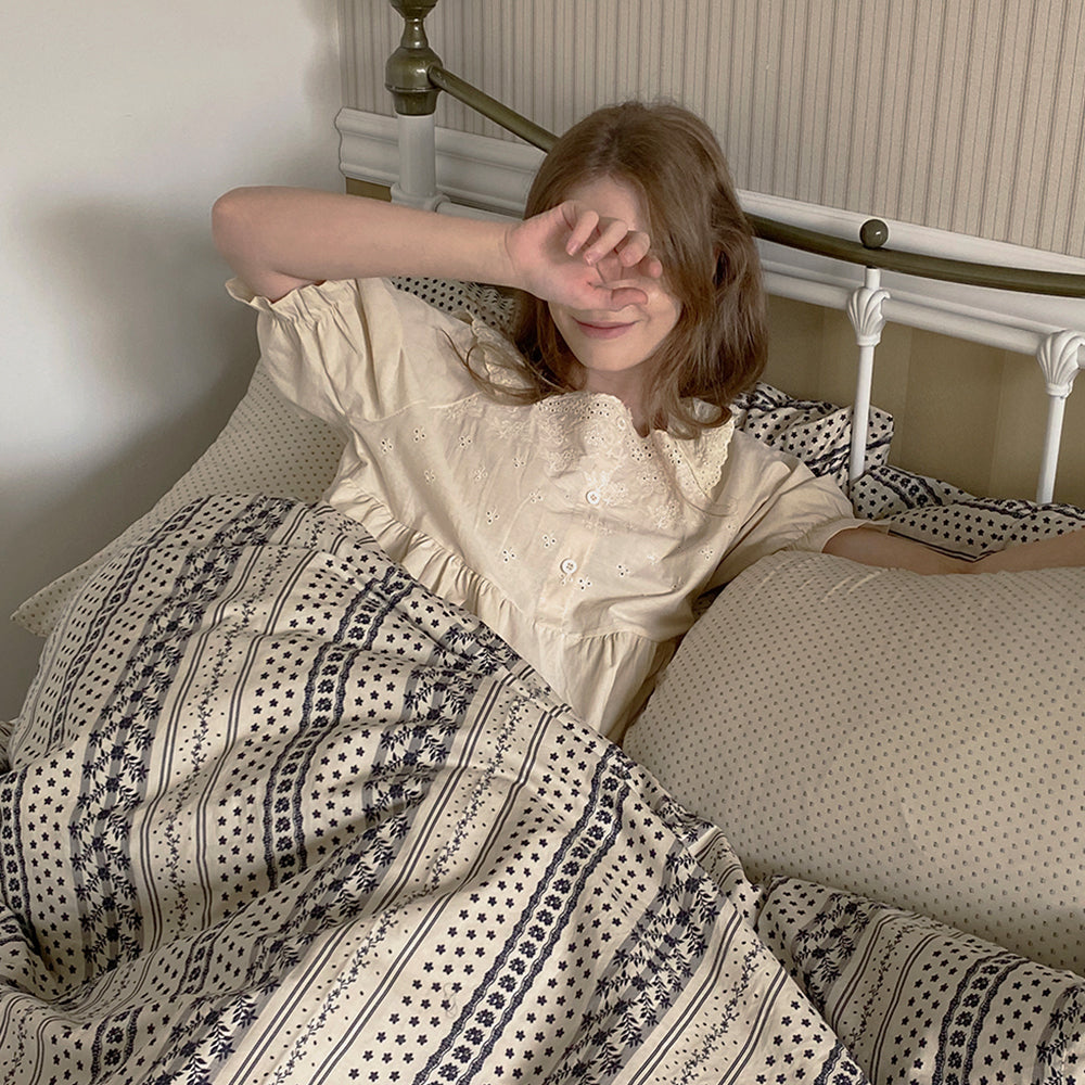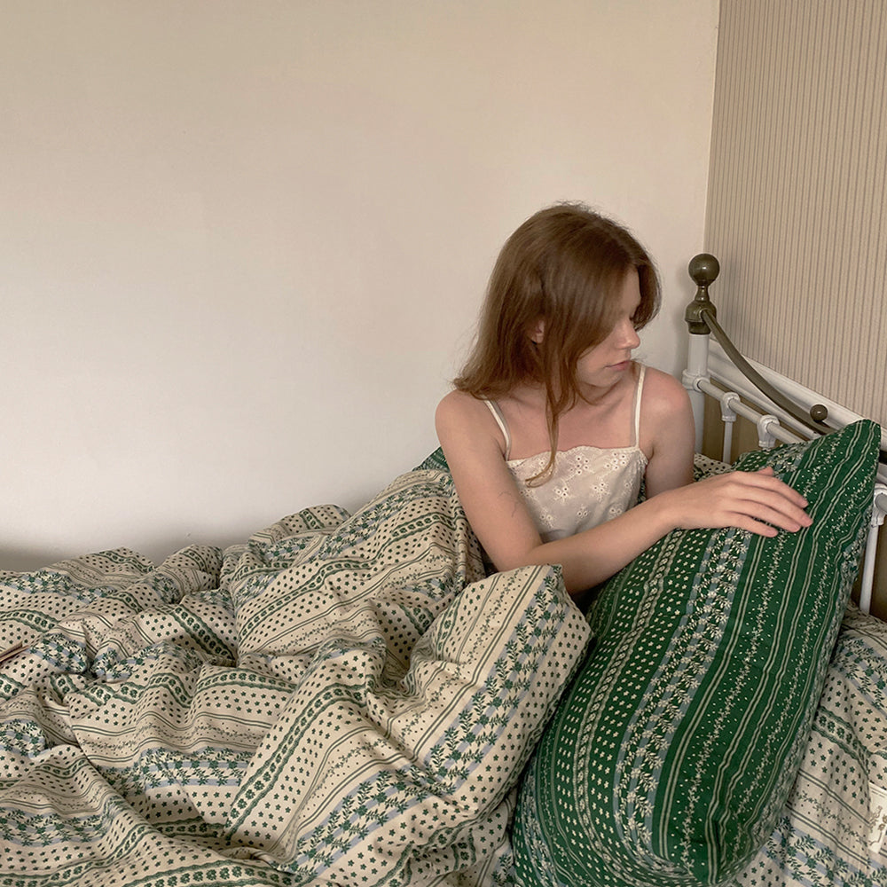 安らかな睡眠をもたらす高密度コットンを使用して、心地よさを感じられる寝具です。体に優しくフィットする肌触りは、まるで肌のように柔らかく優しく包み、快適な睡眠を提供してくれます。ヴィンテージで素朴な花柄が並び、居心地の良い暖かさを感じられます。