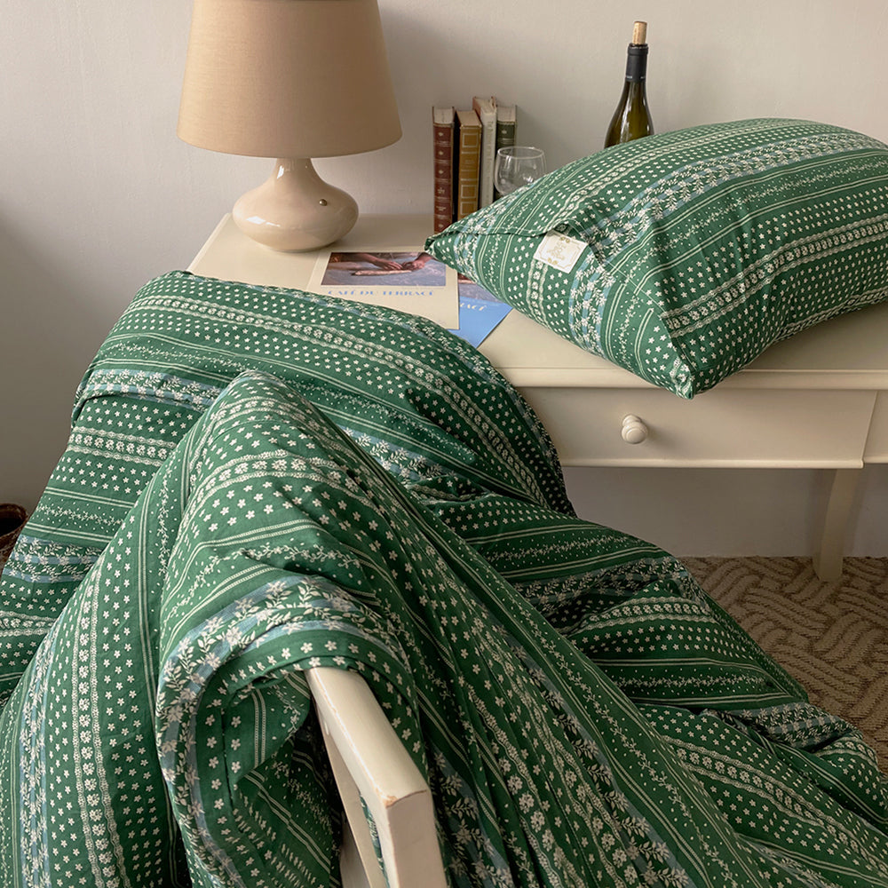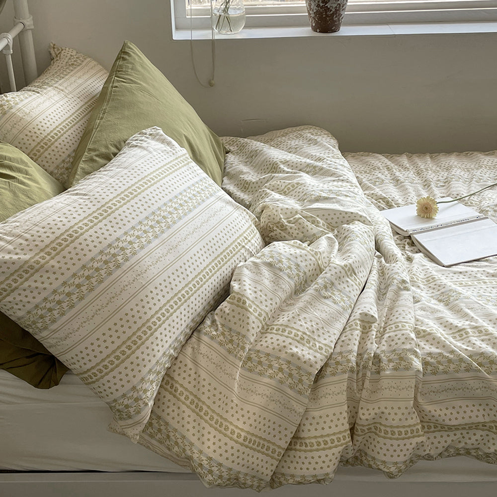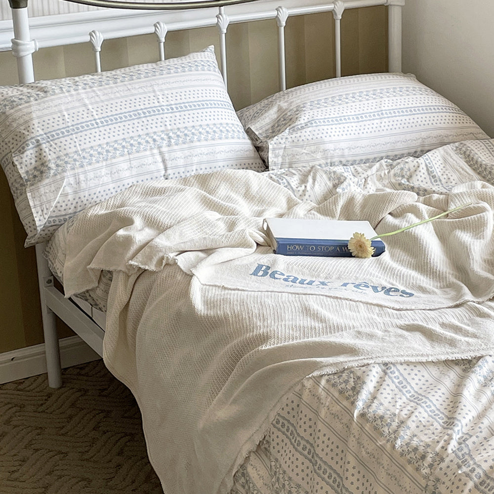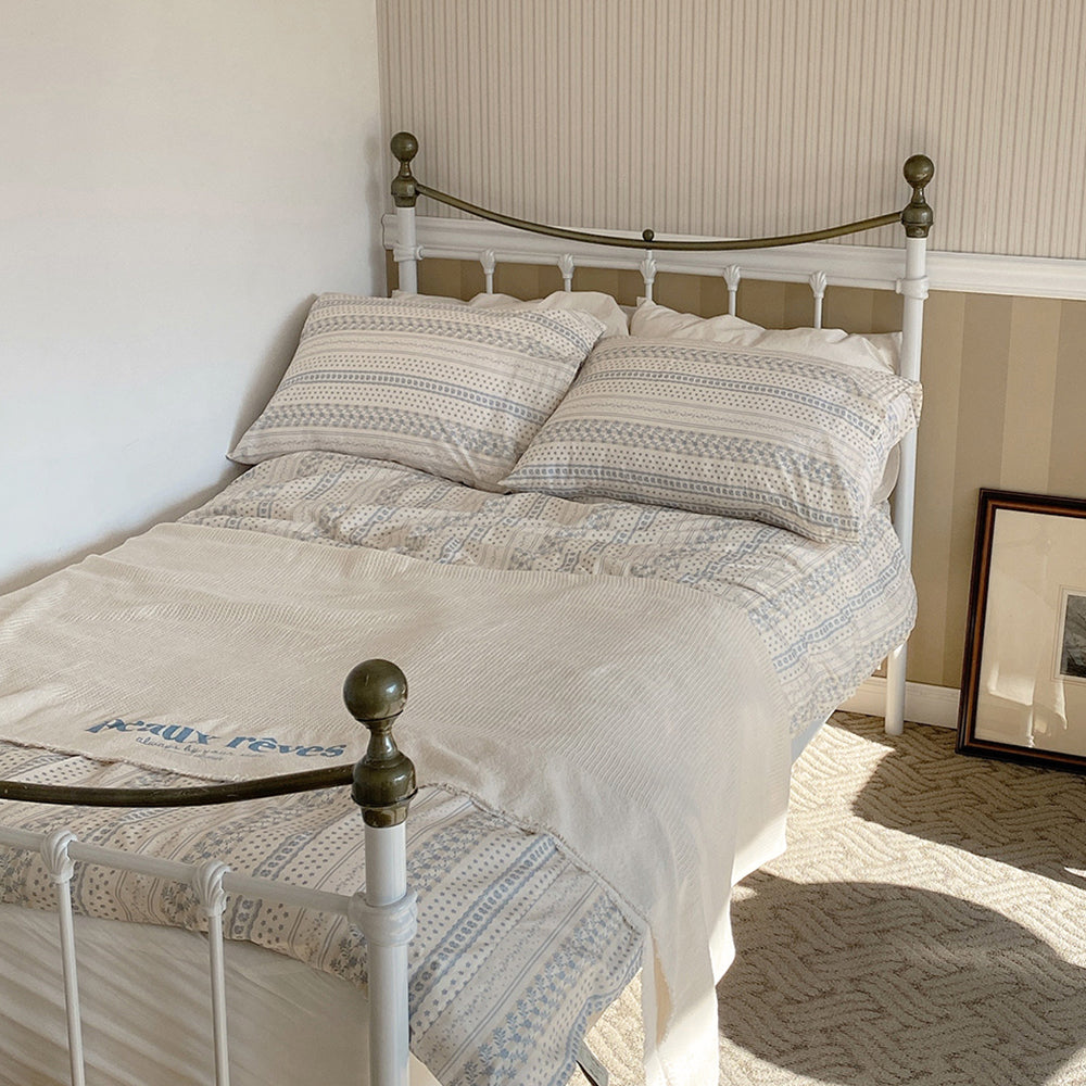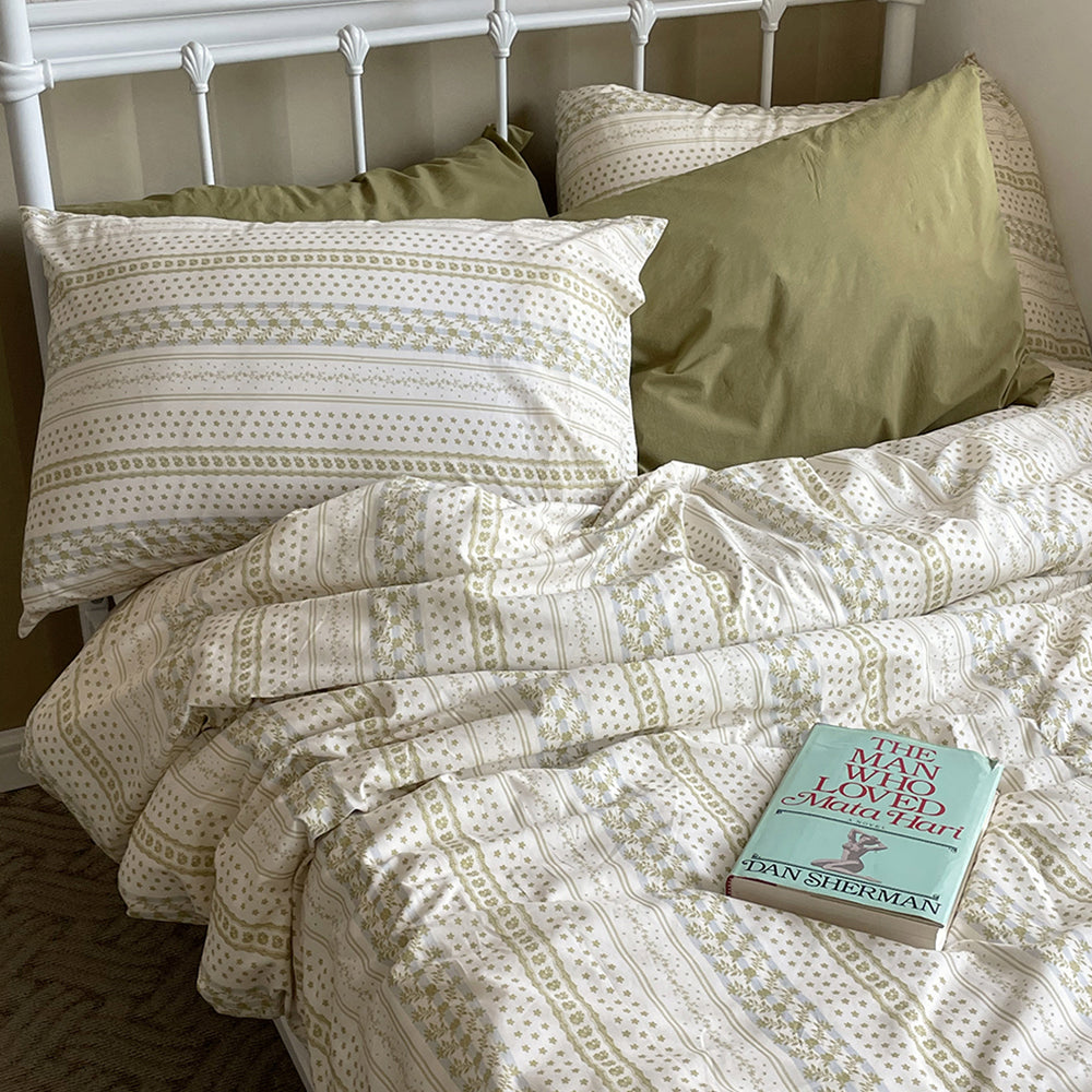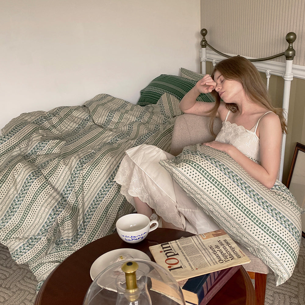 安らかな睡眠をもたらす高密度コットンを使用して、心地よさを感じられる寝具です。体に優しくフィットする肌触りは、まるで肌のように柔らかく優しく包み、快適な睡眠を提供してくれます。ヴィンテージで素朴な花柄が並び、居心地の良い暖かさを感じられます。